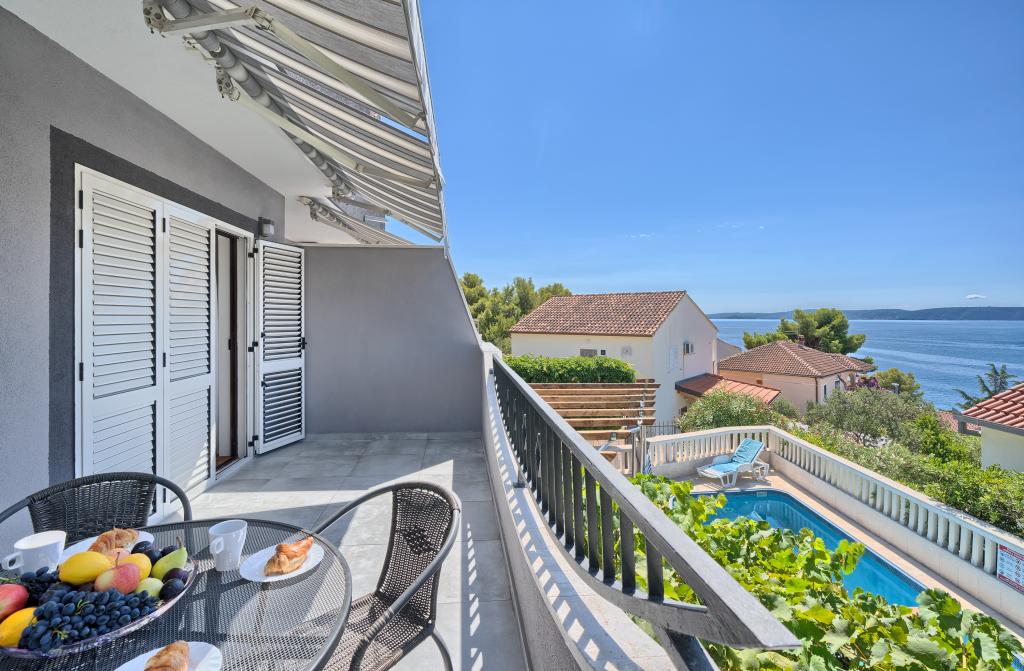 Absolut perfekte Platzverhältnisse, günstiger Preis, Wohnung mit direktem Blick auf das Meer und den Pool, Außendusche am Pool und Sonnenliegen für den Komfort der Gäste, der Weg zum Parkplatz ist wirklich ziemlich steil und rutschig, uns fehlte ein Geschäft die Nähe, aber die Qualität der Unterkunft machte das wieder wett.