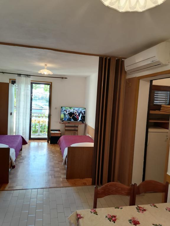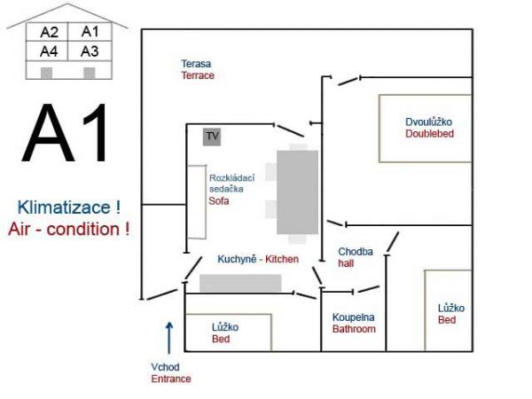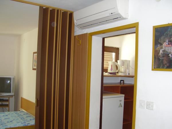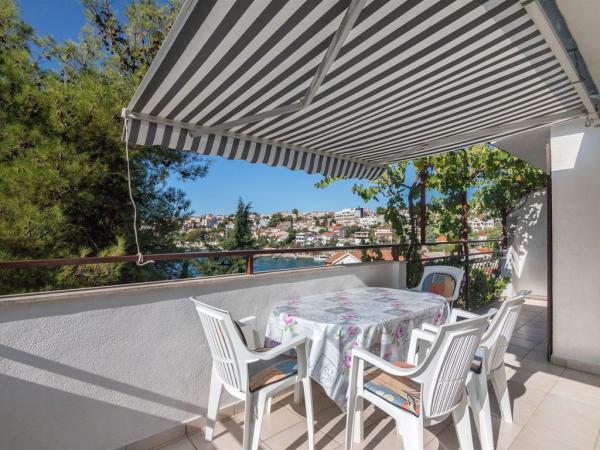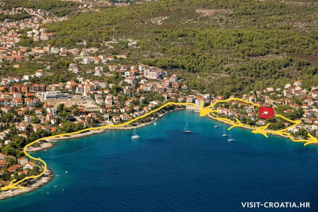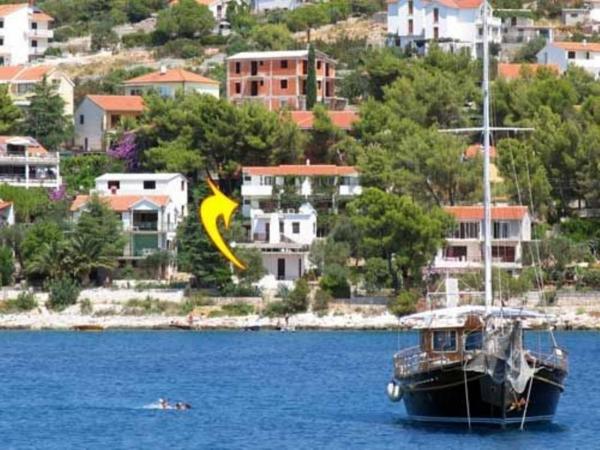 Kurtaxe ist im Preis inbegriffen.Kostenlos, Internet, Klimaanlage. Parken... Gegen geringe Gebühren können Wäscheservices zu Hause in Anspruch genommen werden. Die erhaltene Natur am Meer lädt zu Spaziergängen und einsamen Stränden ein. Die Strände sind 200 m entfernt, kiesig, felsig... Radfahren ist möglich. In der Nähe gibt es einen Tennisplatz und 200 m vom Haus entfernt gibt es eine Tauchschule - Tauchausflüge, Boots- und Rollerverleih möglich, . Spaß-Wasserpark für Kinder am örtlichen Strand. Die UNESCO-Stadt Trogir liegt 5 km entfernt. Die Betten in den Wohnungen A1 und A2 sind gleich und bestehen aus: einem Hauptzimmer und 2 Zimmern mit einem Einzelbett und einem Zusatzbett im Wohnzimmer-Balkon von ca. 15 m. A3 verfügt über ein PAARZIMMER – KLEINER BALKON, ein EINZELZIMMER und 2 separate BETTEN im WOHNZIMMER – KLEINER BALKON und verfügt über 2 DUSCHE_TOILETTE 12 m, durch die Sie die Wohnung betreten. A4 verfügt über ein PAARZIMMER – KLEINER BALKON, Sofa-120 cm breit im Wohnzimmer und 2 separate BETTEN im WOHNZIMMER - KLEINER BALKON und verfügen über 2 DUSCHE_TOILETTE 12m, durch die man die Wohnung betritt