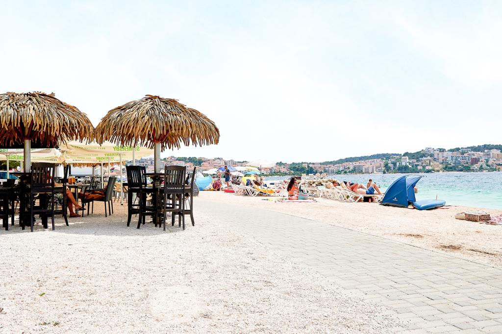 Ein charmantes Haus in Strandnähe, umgeben von Gärten und mediterranen Pflanzen. Jede Etage des Hauses ist eine separate Wohnung mit großen Räumen. Die Entfernung zum Strand beträgt 40 Meter. Vor dem Haus sind ausreichend Parkplätze vorhanden. Hier können Sie einen idyllischen und aktiven Urlaub verbringen. Der Außengrill befindet sich hinter dem Haus und verfügt über eine überdachte Sitzecke für 15 Personen.