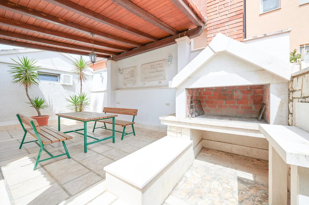 Kurtaxe ist im Preis inbegriffen. Buchungsbestätigungsdokument bei ReservierungIn unmittelbarer Nähe gibt es Restaurants, Supermärkte, Tauchschule, Wasserscooter-Verleih usw. Alles ist in Reichweite, sodass alles zu Fuß erledigt werden kann. Für Gäste, die mit dem Boot anreisen, gibt es in unmittelbarer Nähe des Ferienhauses einen kleinen und praktischen Hafen. Der gemeinschaftliche Grillplatz lädt zum mediterranen Beisammensein ein. Der große Tisch vor dem Grill bietet Platz für bis zu 15 Personen. Im Erdgeschoss gibt es einen gemeinsamen Waschraum.