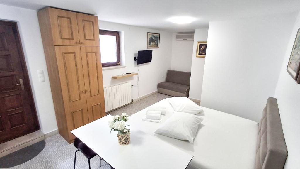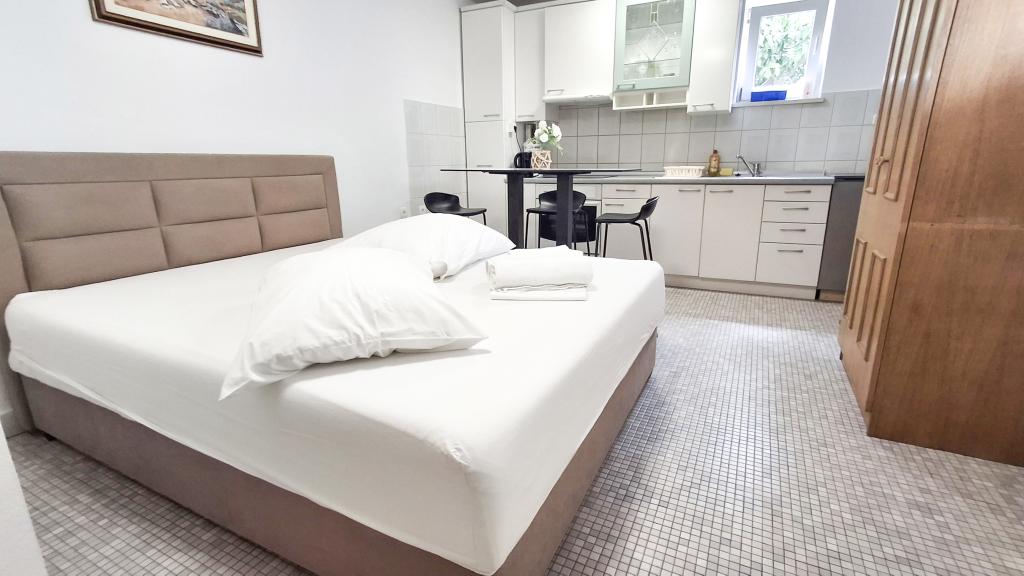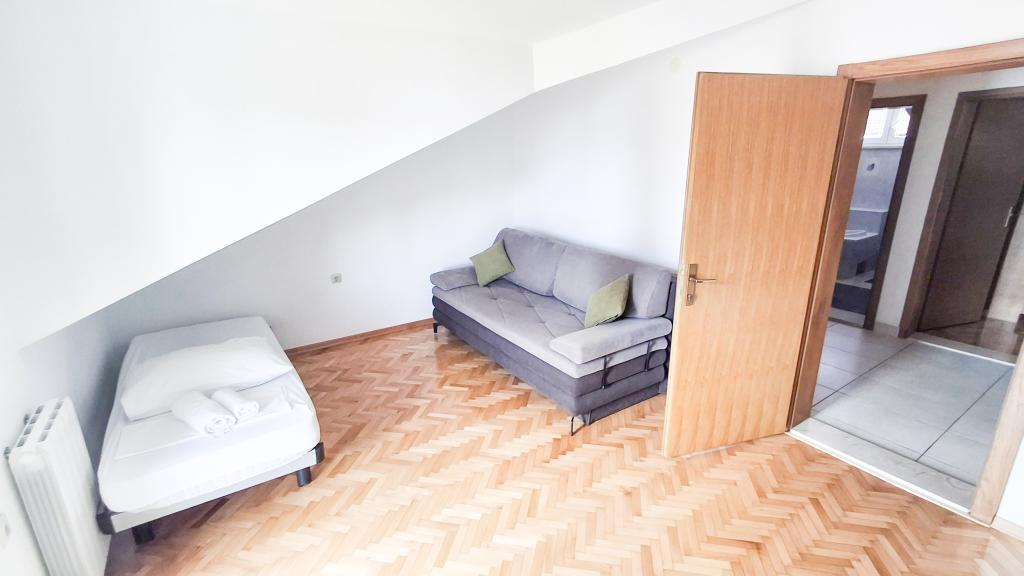 Die Wohnung hat eine gute Lage und großes Potenzial, sollte aber gut renoviert werden, um den Preis für die Unterkunft in der Hochsaison zu rechtfertigen, der bei 150 € pro Nacht liegt! Zunächst sollten Sie in den inneren Schallschutz investieren, denn der Lärm zwischen den Wohnungen ist unerträglich. Normalerweise verursacht das Gehen durch die Wohnung, das Verrücken der Stühle im Esszimmer, etwas, das versehentlich auf den Boden fällt und dergleichen, viel Lärm, sodass in dieser Wohnung kein ruhiger Urlaub erwartet werden kann. Die Wohnung ist groß und geräumig, aber für diesen hohen Preis wirklich schlecht ausgestattet. Die Klimaanlage ist laut und befindet sich nur in einem Zimmer. Die Küche ist baufällig, schlecht ausgestattet. Das Badezimmer ist durchschnittlich, nichts Besonderes. Darüber hinaus verfügt die Wohnung nur über ein Schlafzimmer und das andere ist eigentlich ein Wohn-/Esszimmer, in dem es anstelle einer Couch einige unbequeme Betten gibt, deren Größe für einen Erwachsenen schwierig ist, sich umzudrehen, geschweige denn zu bekommen eine gute Nachtruhe. Das einzig Positive ist die Lage in der Nähe des Strandes, aber das reicht nicht aus, um den geforderten Preis wert zu sein. Der Gastgeber ist nett, aber auf die ihm vorgebrachten Beschwerden über Sauberkeit und Lärm hatte er keinen großen Einfluss.