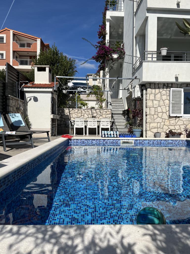 Wir haben eine Woche in einem Apartment verbracht, zwei Erwachsene und drei Kinder. Wir waren begeistert! Tolles Apartment, sauber und frisch. Der Balkon und die Aussicht waren fantastisch! Wir haben den Pool täglich genutzt und waren mehr als zufrieden. Wir haben auch ein paar Abende am Pool gegrillt und die Kinder fanden es gemütlicher als ein Restaurant. Die Lage ist super! Es gibt mehrere Bademöglichkeiten, entweder am Strand oder an den Felsen. Unser Jüngster ist vier Jahre alt und konnte problemlos zu Fuß zu den verschiedenen Stellen gehen. Es lag etwas im Zentrum und in einem größeren Lebensmittelladen, aber ohne einen angemessenen Ausflug war das kein Problem. Mit Uber sind wir problemlos unter anderem nach Trogir gefahren. Darko ist ein wunderbarer Gastgeber, der mit vielen Tipps kam und immer erreichbar war. Er war sehr um unser Wohlbefinden besorgt! Wir kommen wieder