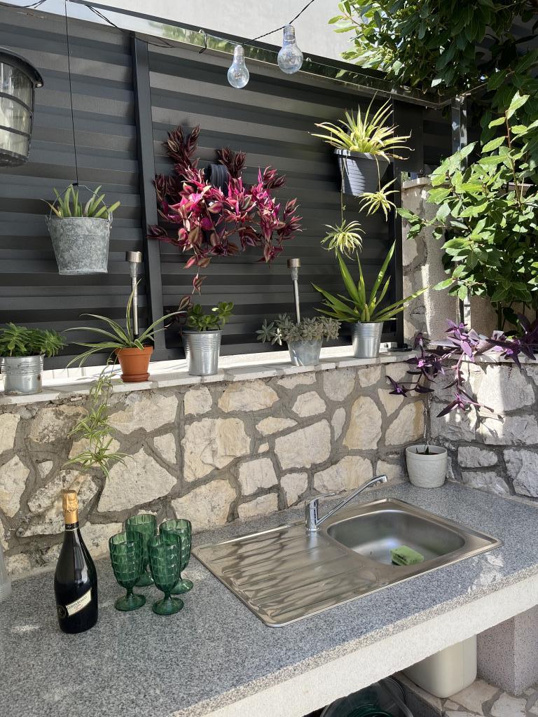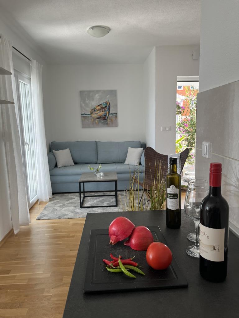 Hoher Standard der Wohnungen. Es ist genauso wie auf den Bildern. Sauber, ordentlich und es fehlt an nichts. Es gibt eine Spülmaschine, Mikrowelle, Kaffeemaschine, Waschmaschine, TV. Barbecue, Swimmingpool und Liegestühle vor Ort. Ganz in der Nähe des Meeres. Tolle Lage für kurze und lange Ausflüge, z.B. Trogir, Split, Šibenik, Biokovo, Dubrovnik, Mostar ... Der Gastgeber ist sehr nett und geduldig.