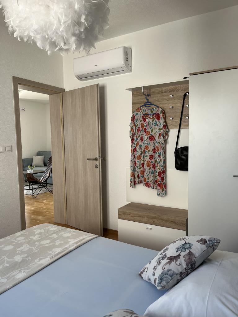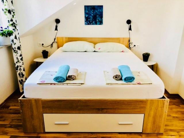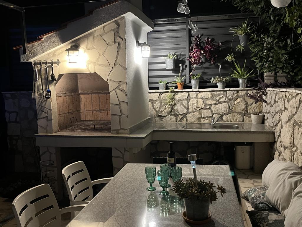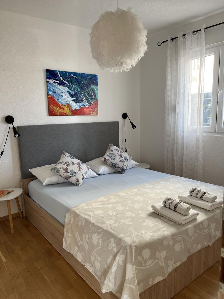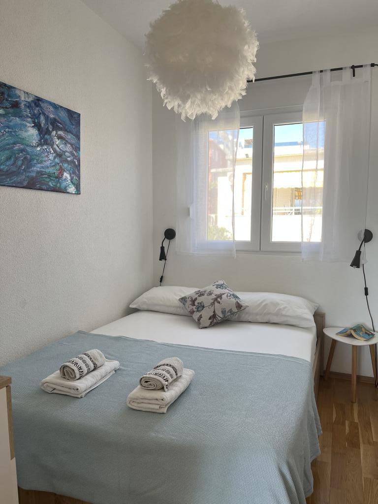 Wir haben die oberste Wohnung gemietet und könnten nicht zufriedener sein. Der Raum ist sauber und es gibt alles, was Sie brauchen. Die Aussicht von der Terrasse ist atemberaubend!!! Es gibt einen Esstisch und eine Lounge. Ein sehr bequemes Bett, eine Spülmaschine, eine schöne große Dusche und eine Waschmaschine machen Ihren Urlaub einfach. Der Pool macht es sehr angenehm, und in diesem Gartenbereich gibt es auch eine Dusche, damit Sie duschen können, bevor Sie in den Pool gehen. 60 Meter vom Haus entfernt erwartet Sie das Meer, herrlich!!! In der Nähe gibt es einen Minimarkt sowie mehrere Cafés und nette Restaurants. Machen Sie sich selbst den Gefallen und mieten Sie diesen wirklich schönen Ort für einen sehr, sehr schönen Urlaub. Darko und Niclas sind die besten Gastgeber, die man sich wünschen kann. Sie sind aufmerksam, freundlich und immer für Sie da, um Ihnen gute Tipps zu geben, was Sie in Kroatien tun und lassen sollten.