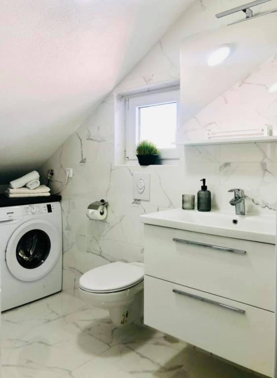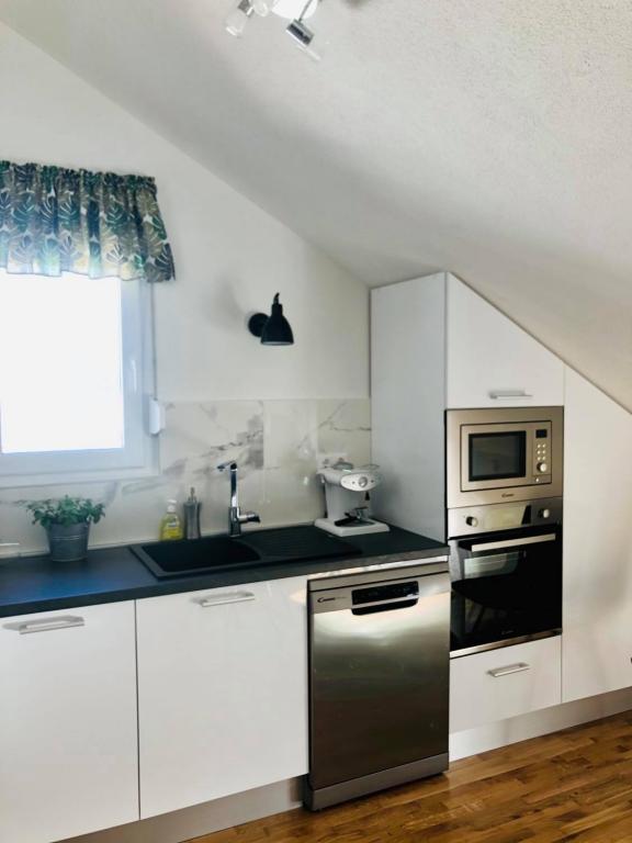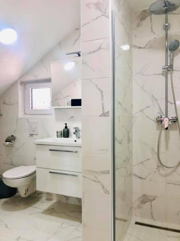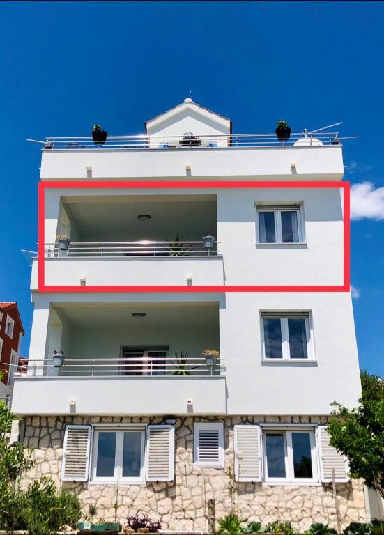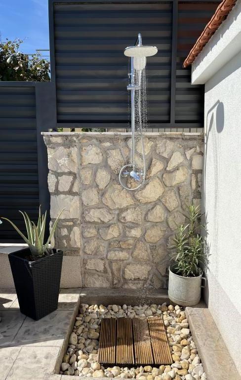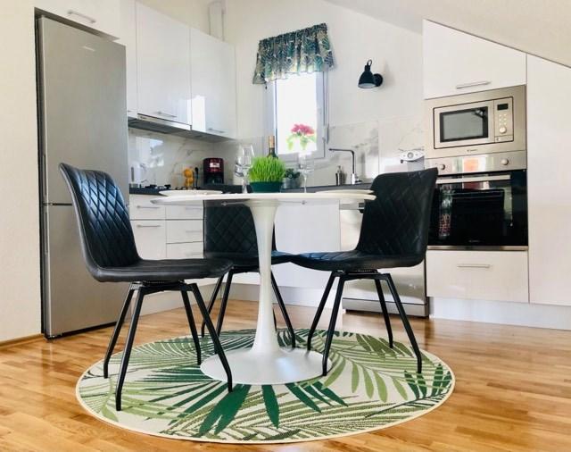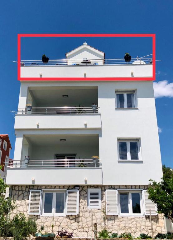Wir haben die oberste Wohnung gemietet und könnten nicht zufriedener sein. Der Raum ist sauber und es gibt alles, was Sie brauchen. Die Aussicht von der Terrasse ist atemberaubend!!! Es gibt einen Esstisch und eine Lounge. Ein sehr bequemes Bett, eine Spülmaschine, eine schöne große Dusche und eine Waschmaschine machen Ihren Urlaub einfach. Der Pool macht es sehr angenehm, und in diesem Gartenbereich gibt es auch eine Dusche, damit Sie duschen können, bevor Sie in den Pool gehen. 60 Meter vom Haus entfernt erwartet Sie das Meer, herrlich!!! In der Nähe gibt es einen Minimarkt sowie mehrere Cafés und nette Restaurants. Machen Sie sich selbst den Gefallen und mieten Sie diesen wirklich schönen Ort für einen sehr, sehr schönen Urlaub. Darko und Niclas sind die besten Gastgeber, die man sich wünschen kann. Sie sind aufmerksam, freundlich und immer für Sie da, um Ihnen gute Tipps zu geben, was Sie in Kroatien tun und lassen sollten.