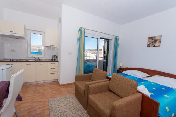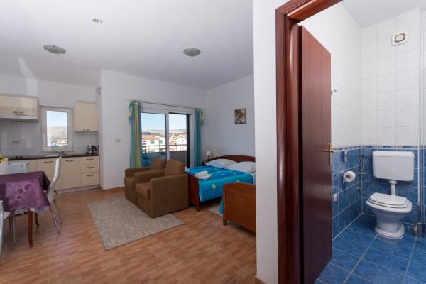 Wir wünschen Ihnen ein herzliches Willkommen in der sonnigen Paradies Urlaub in Trogir. Wir sind nur 7 km vom Flughafen "Split" und 3 km von der Stadt Trogir. In dieser Oase der Schönheit und Freude möchten wir Perle "Villa Fumija", die luxuriösen Apartments und Studio-Apartments bietet einzuführen. Vergessen Radic Familie bietet seinen Gästen seit Jahren mit dem erkennbaren Qualität von Service und Gastfreundschaft obiteli mit langjähriger Erfahrung mit. Mit einem "Ville Fumia" bietet allen seinen Gästen Informationen und Organisation von Catering-Dienstleistungen, um ihren Aufenthalt komfortabel und komplett "Villa Fumija" ist 100 m vom Meer entfernt und verfügt über einen privaten Parkplatz für Autos und Busse.