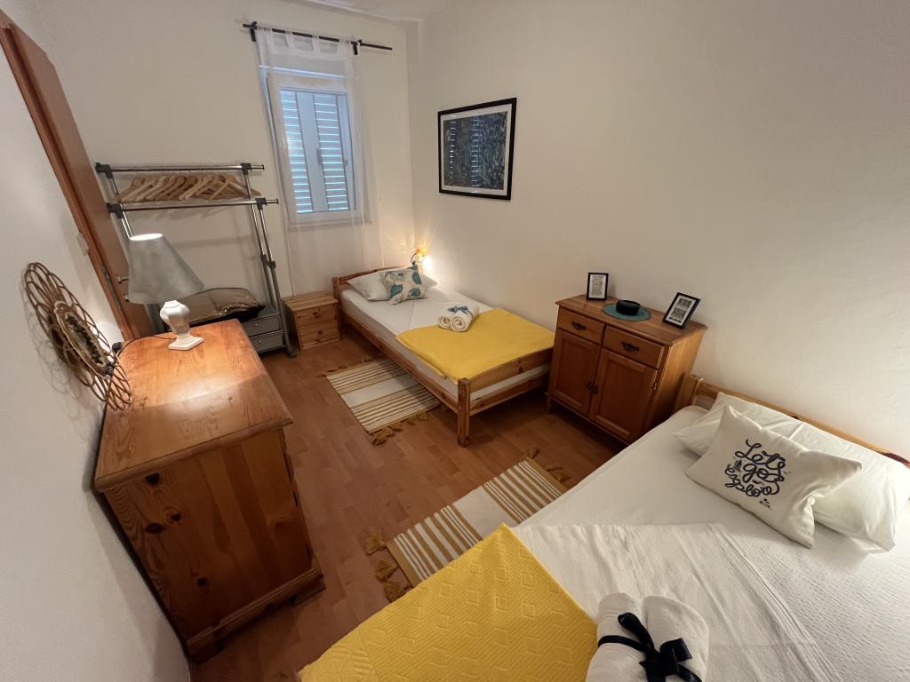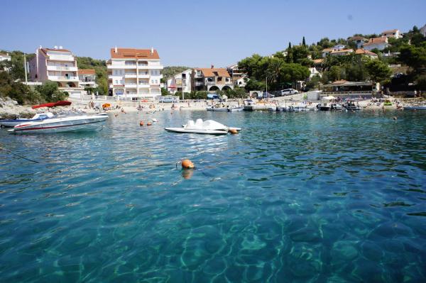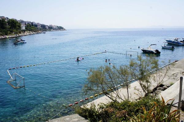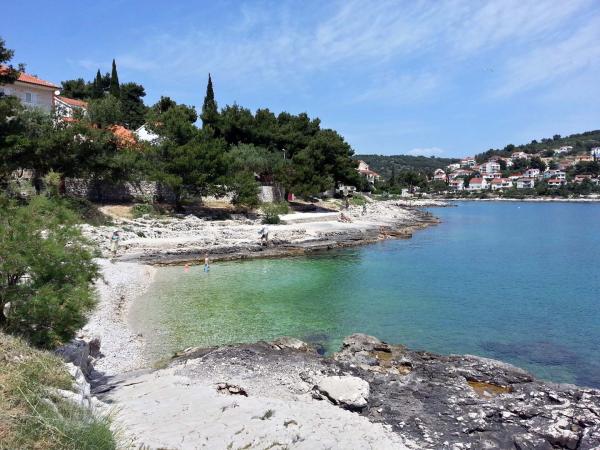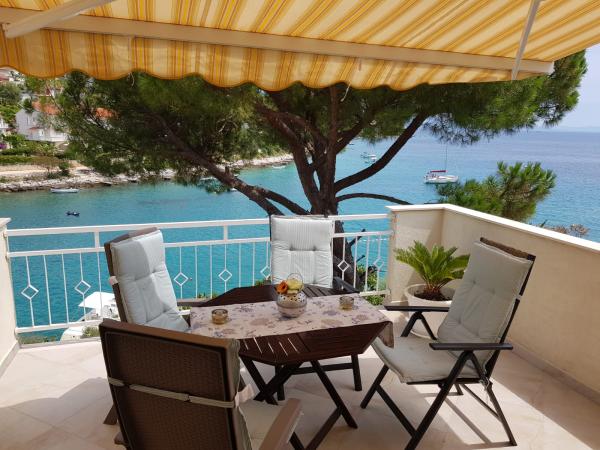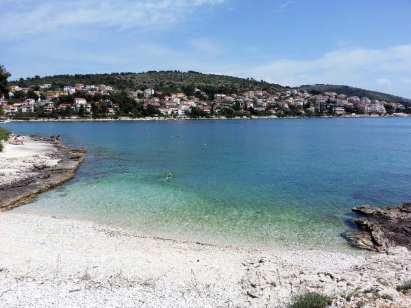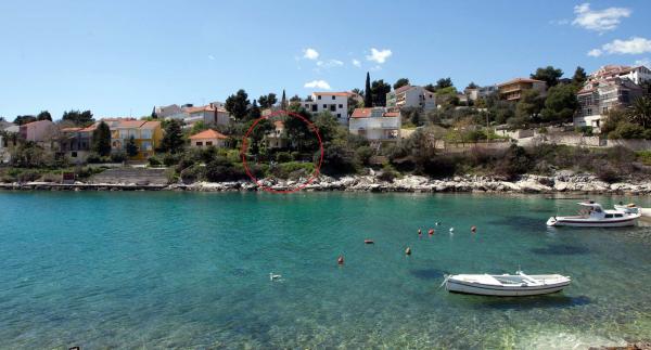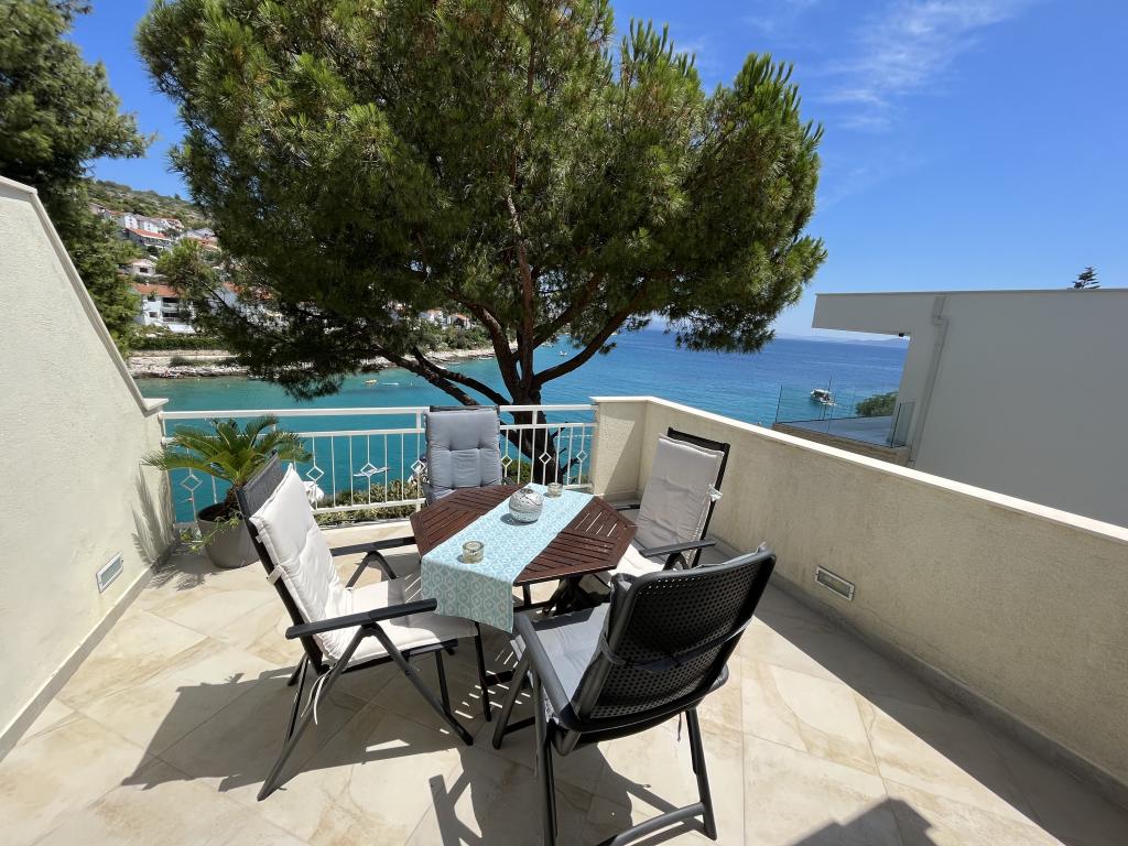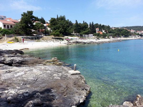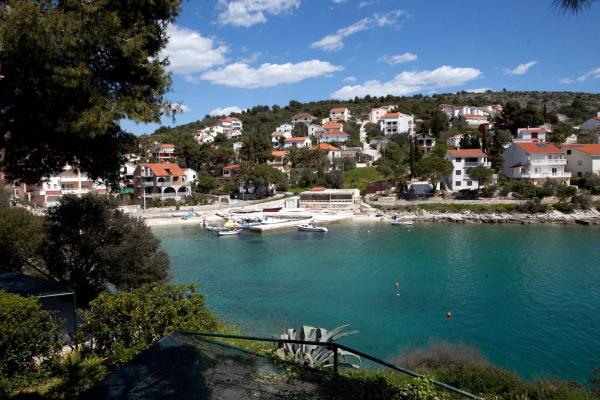 Die Wohnungen befinden sich auf der Südseite der Insel Ciovo in der größten Mavarcica. Das Haus mit großem Garten und viel Grün, wirklich nur 10 Meter vom Meer entfernt, mit atemberaubendem Blick auf die Inseln Brac, Solta und Hvar. Die Wohnungen sind komfortabel und gut alle mit großzügigen Terrassen und einzigartigem Blick auf die über den Inseln und die Bucht ausgestattet. Das Haus auf einem Grundstück von 900 Quadratmetern bietet Ihnen kompletten Komfort ii Privatsphäre, da der benachbarten Häuser geschützt von hohen Hecken und Bäumen, alten Olivenbäumen von Lorbeer und Palmen. Für jede Wohnung ist reserviert und ein überdachter Parkplatz. Die Gäste können den Kamin zum Grillen, nutzen und weiter und Außenduschen