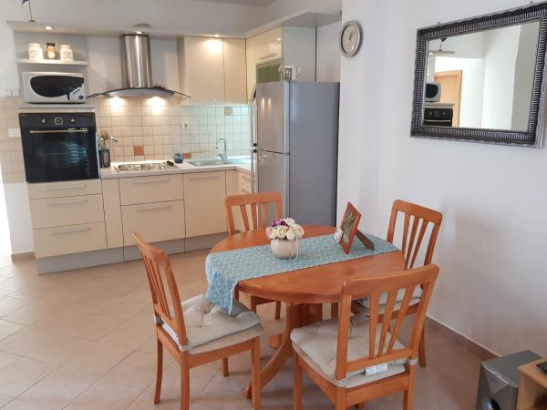 Vielen Dank für tolle 12 Tage Die Wohnungen sind sauber, duftend, es hat uns an nichts gefehlt. Große, großzügige Terrasse mit Blick auf das Meer. Betonplatten direkt unter der Wohnung. Wir haben sie täglich mit älteren Kindern genutzt (Privatsphäre, Kälte nach dem Mittagessen). Direkt gegenüber (3 Min.) ein ruhiger Kiesstrand für kleine Kinder. Vielen Dank, wir hatten eine tolle Zeit.