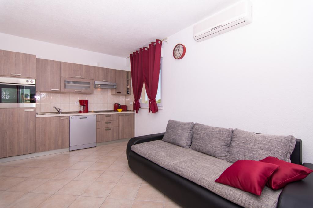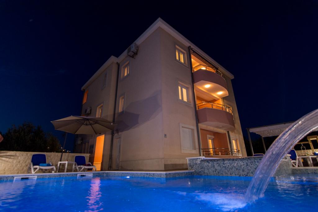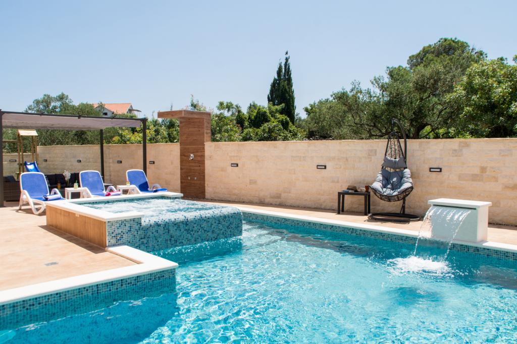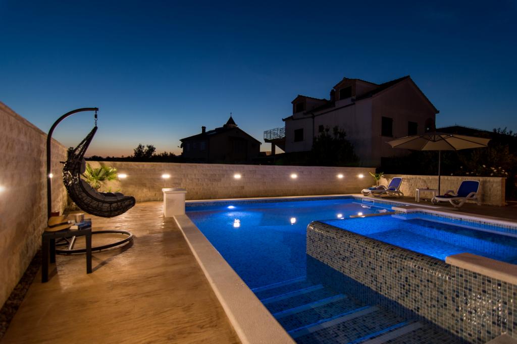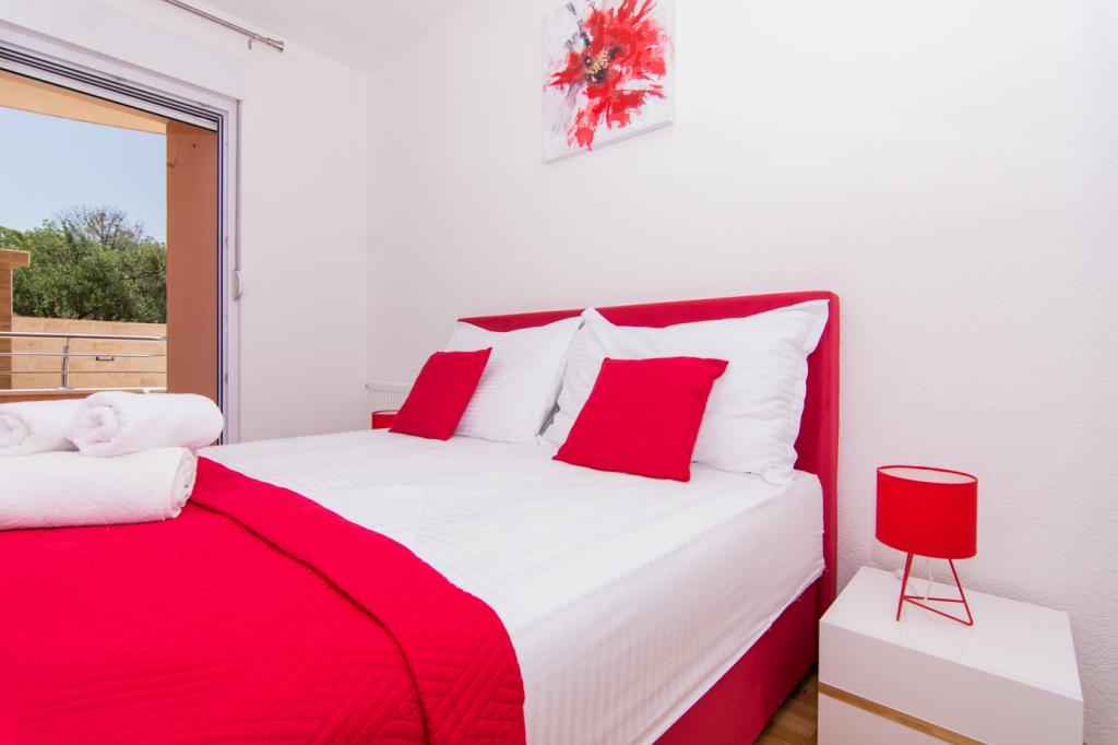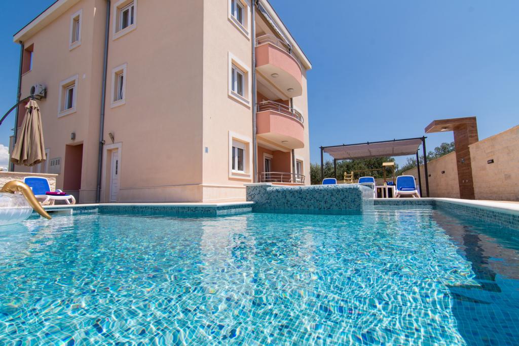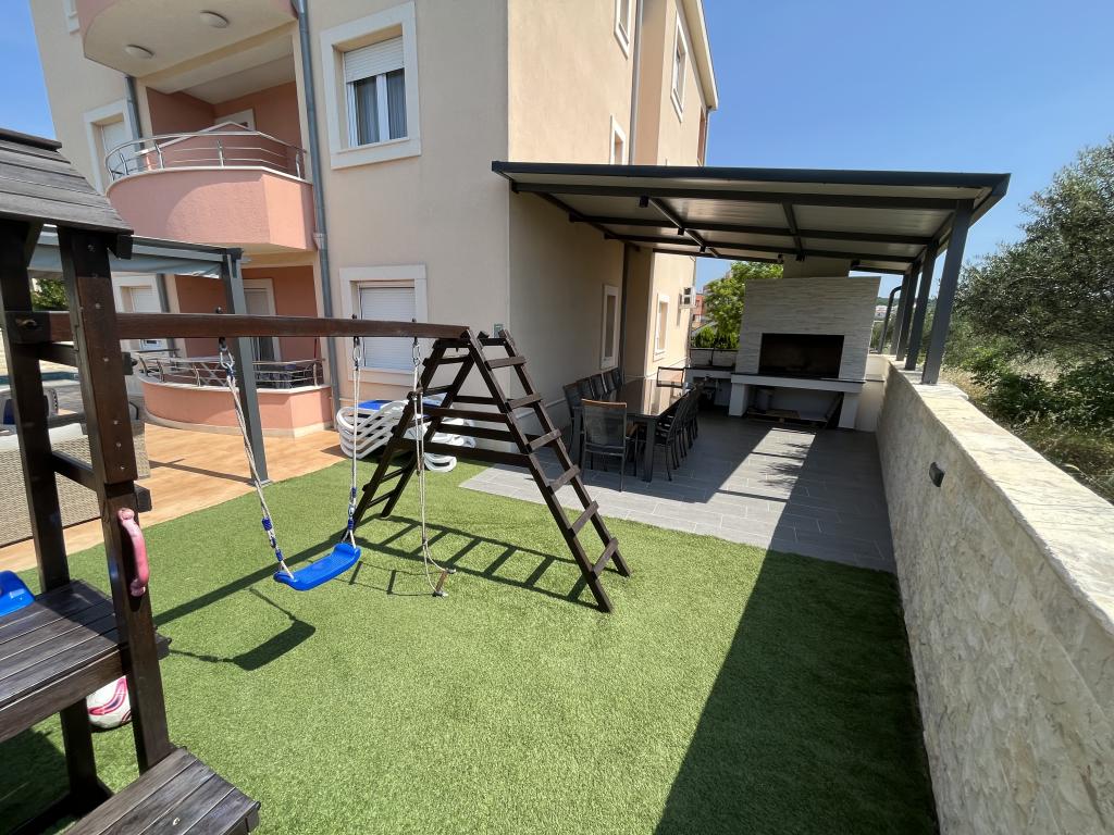 Die modern ausgestatteten und klimatisierten Apartments Villa Peky befinden sich in einem Familienhaus auf der Insel Čiovo in Okrug Gornji. Zwei A2 2-Apartments und ein 4 2-Apartment bieten Platz für bis zu 14 Personen. Vor dem Haus gibt es einen Parkplatz für Gäste. Auf der Rückseite des Hauses gibt es einen beheizten Swimmingpool mit Whirlpool, einen Kinderspielplatz und einen überdachten Außengrill mit großem Tisch. Das beliebteste Reiseziel in der Region Trogir ist Okrug Gornji auf der Insel Čiovo mit seinem wunderschönen Strand. Das alte Dorf Okrug liegt auf einem kleinen Hügel, an dessen Fuß sich ein Fischereihafen befindet, etwa 4 km vom Zentrum von Trogir oder 8 km vom Flughafen Split entfernt. Am Strand in Okrug Gornji können Sie einen Roller oder Jetski mieten, Parasailing und andere Aktivitäten auf See genießen. Im Sommer können Sie in Okrug auch den Schatten von Cafés oder Restaurants genießen, die neben anderen Gerichten auch dalmatinische Spezialitäten anbieten. Die Tauchschule Trogir Diving Center in Mavarčica führt Sie in die Schönheiten der Unterwasserwelt Mitteldalmatiens ein.