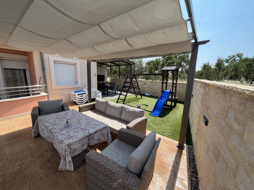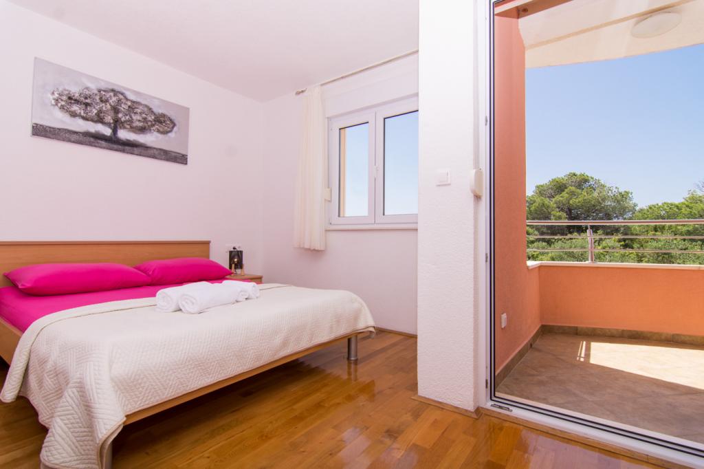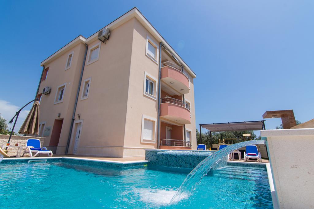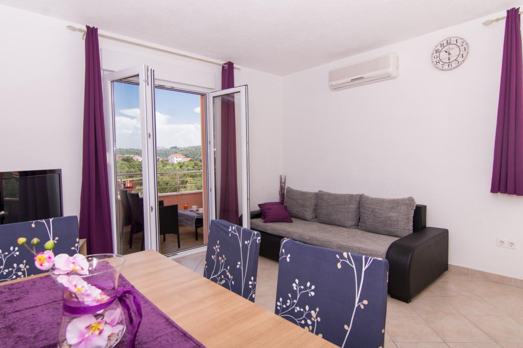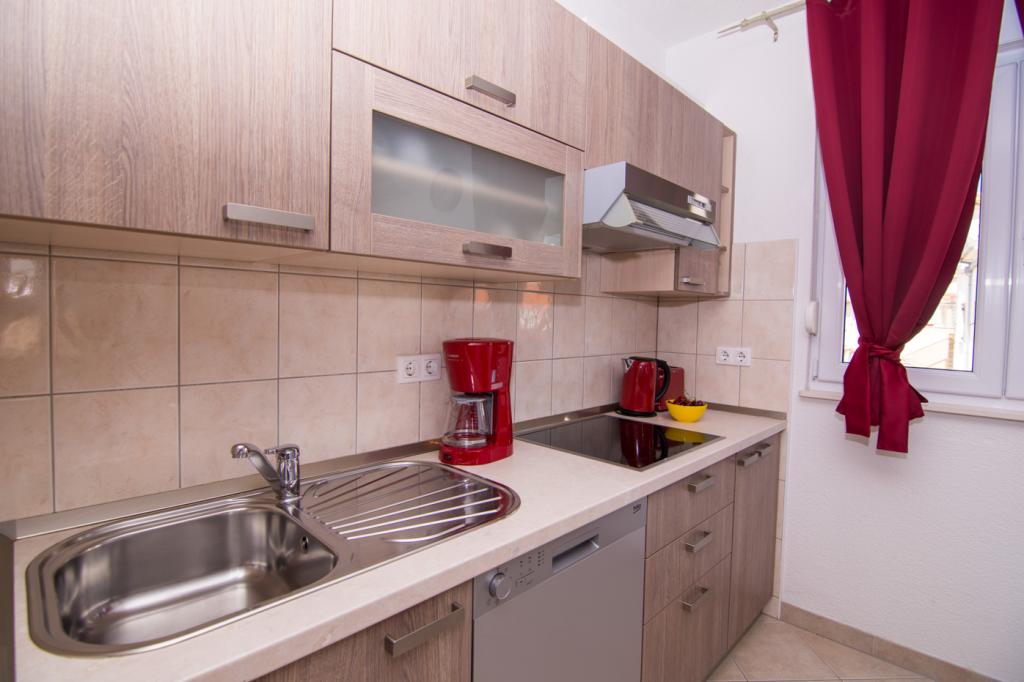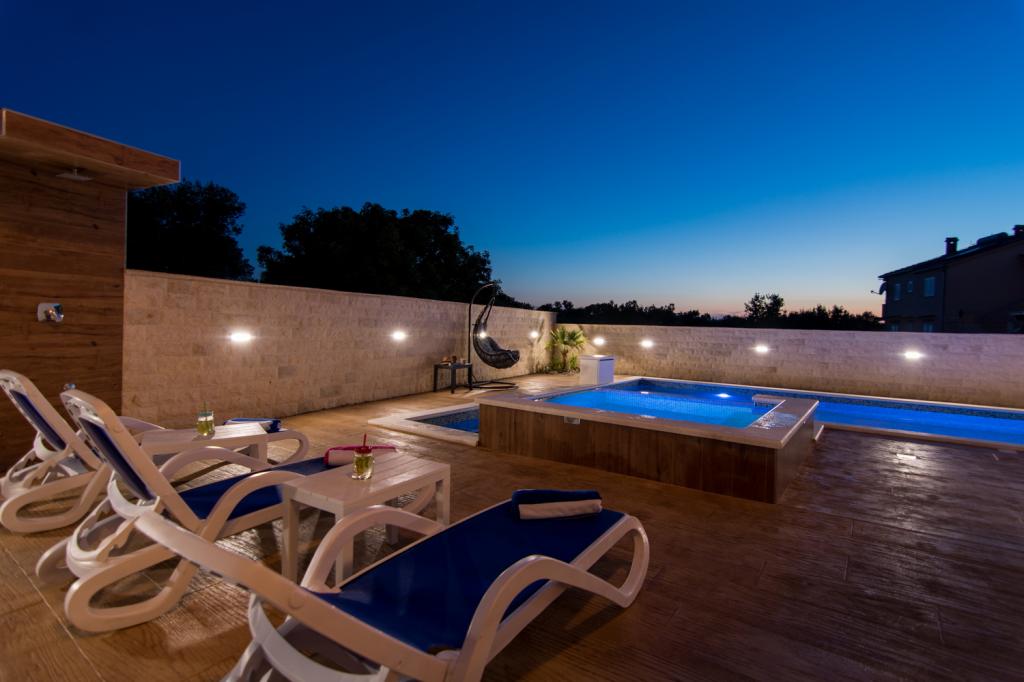 Die modern ausgestatteten und klimatisierten Apartments Villa Peky befinden sich in einem Familienhaus auf der Insel Čiovo in Okrug Gornji. Zwei A2 2-Apartments und ein 4 2-Apartment bieten Platz für bis zu 14 Personen. Vor dem Haus gibt es einen Parkplatz für Gäste. Auf der Rückseite des Hauses gibt es einen beheizten Swimmingpool mit Whirlpool, einen Kinderspielplatz und einen überdachten Außengrill mit großem Tisch. Das beliebteste Reiseziel in der Region Trogir ist Okrug Gornji auf der Insel Čiovo mit seinem wunderschönen Strand. Das alte Dorf Okrug liegt auf einem kleinen Hügel, an dessen Fuß sich ein Fischereihafen befindet, etwa 4 km vom Zentrum von Trogir oder 8 km vom Flughafen Split entfernt. Am Strand in Okrug Gornji können Sie einen Roller oder Jetski mieten, Parasailing und andere Aktivitäten auf See genießen. Im Sommer können Sie in Okrug auch den Schatten von Cafés oder Restaurants genießen, die neben anderen Gerichten auch dalmatinische Spezialitäten anbieten. Die Tauchschule Trogir Diving Center in Mavarčica führt Sie in die Schönheiten der Unterwasserwelt Mitteldalmatiens ein.