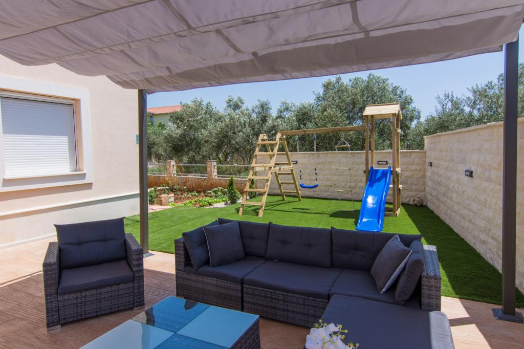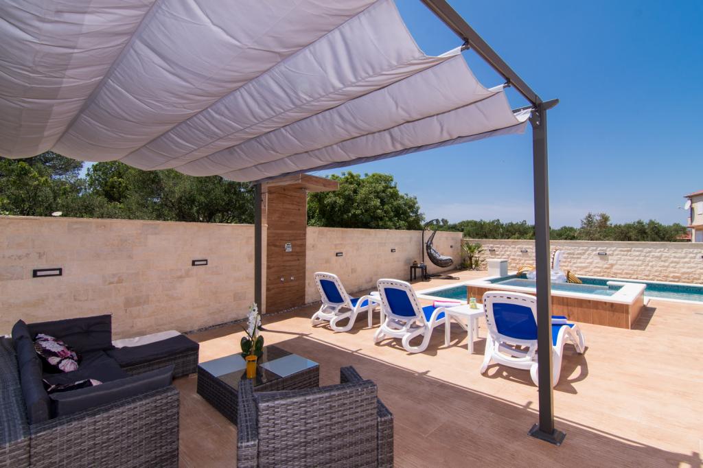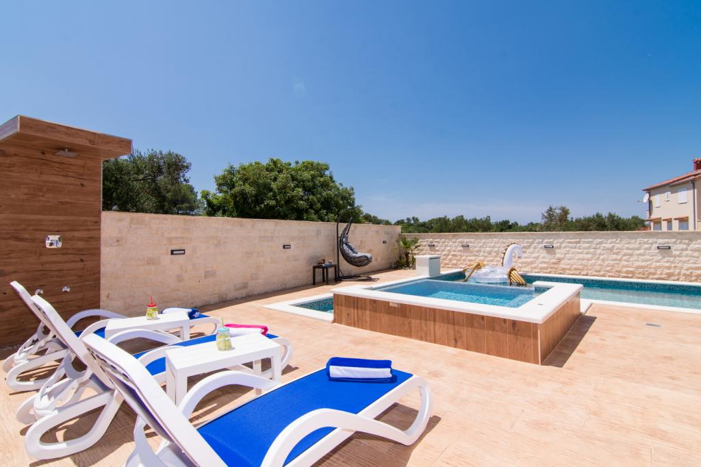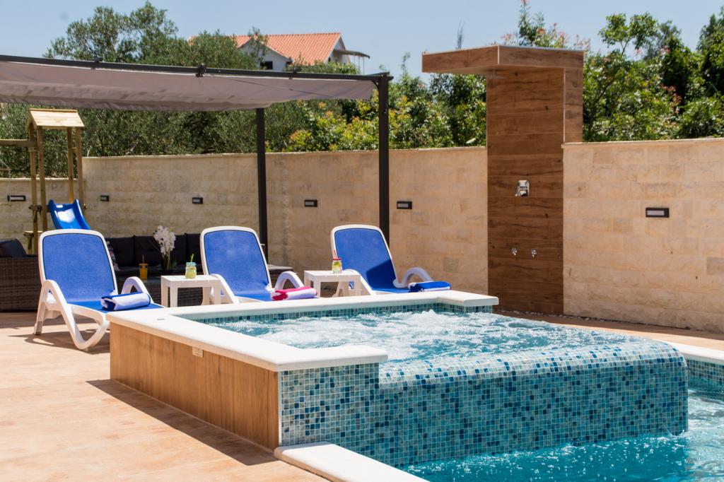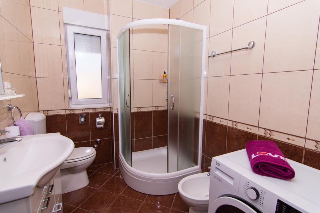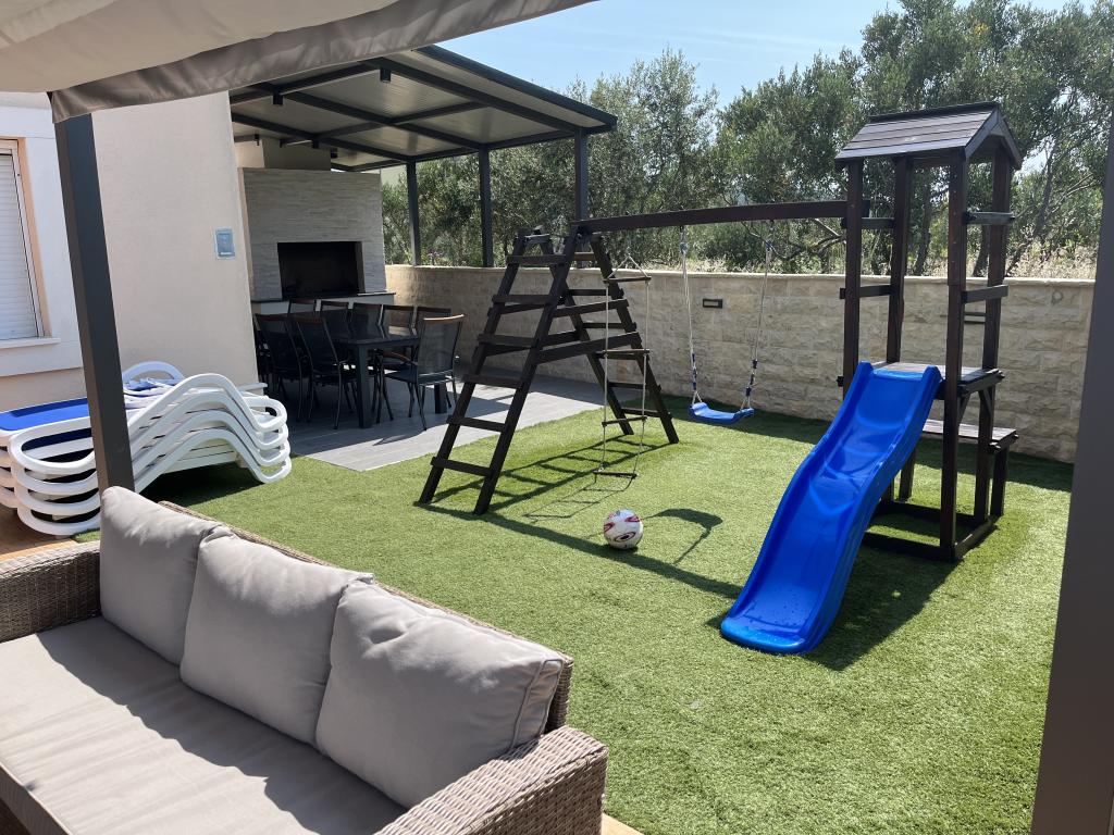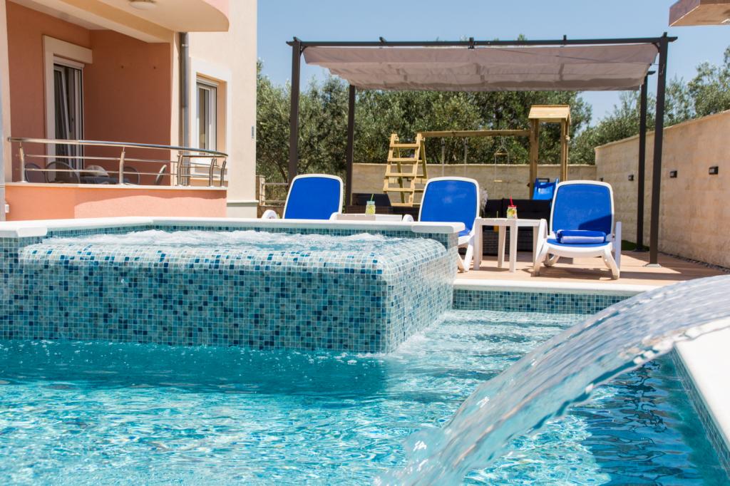 Die modern ausgestatteten und klimatisierten Apartments Villa Peky befinden sich in einem Familienhaus auf der Insel Čiovo in Okrug Gornji. Zwei A2 2-Apartments und ein 4 2-Apartment bieten Platz für bis zu 14 Personen. Vor dem Haus gibt es einen Parkplatz für Gäste. Auf der Rückseite des Hauses gibt es einen beheizten Swimmingpool mit Whirlpool, einen Kinderspielplatz und einen überdachten Außengrill mit großem Tisch. Das beliebteste Reiseziel in der Region Trogir ist Okrug Gornji auf der Insel Čiovo mit seinem wunderschönen Strand. Das alte Dorf Okrug liegt auf einem kleinen Hügel, an dessen Fuß sich ein Fischereihafen befindet, etwa 4 km vom Zentrum von Trogir oder 8 km vom Flughafen Split entfernt. Am Strand in Okrug Gornji können Sie einen Roller oder Jetski mieten, Parasailing und andere Aktivitäten auf See genießen. Im Sommer können Sie in Okrug auch den Schatten von Cafés oder Restaurants genießen, die neben anderen Gerichten auch dalmatinische Spezialitäten anbieten. Die Tauchschule Trogir Diving Center in Mavarčica führt Sie in die Schönheiten der Unterwasserwelt Mitteldalmatiens ein.