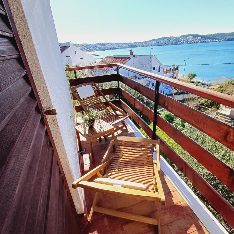 Wir waren mit 3 Kindern unterwegs. Nehmen Sie einfach die Treppe vor dem Apartment hinunter zum Strand. Der Strand von Rožac hat uns gefallen, da er natürlichen Schatten bietet. Das Wasser und der Strand waren sehr schön und gut für Kinder. Sie finden alles in der Nähe des Apartments. Die nächste Bushaltestelle ist Rožac. Sie können den Bus nach Trogir oder nach Okrug Donji nehmen. Die Altstadt von Trogir ist zu Fuß erreichbar. Die Aussicht vom Balkon war fantastisch. Der Gastgeber war sehr freundlich. Ich kann dieses Apartment wirklich empfehlen!