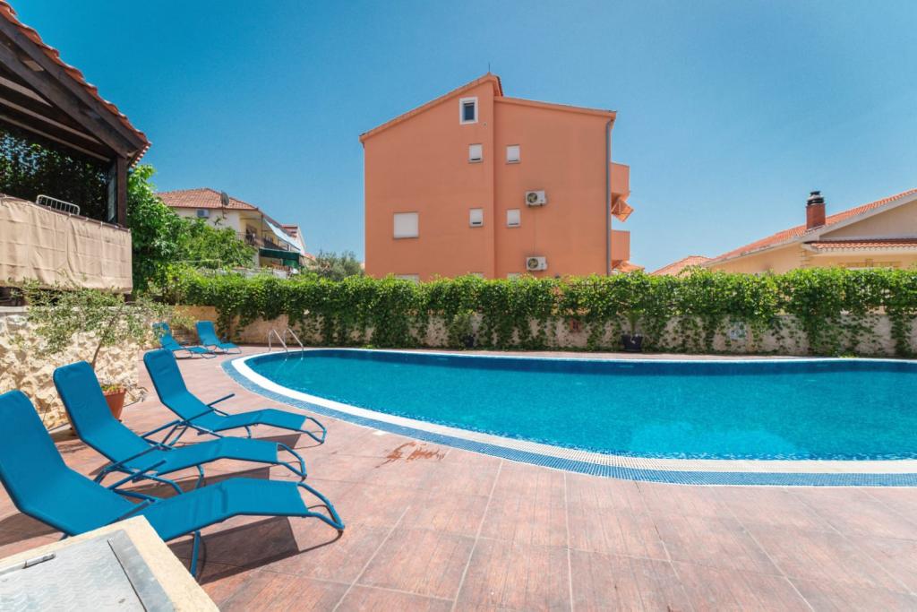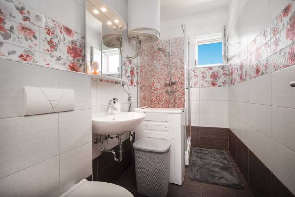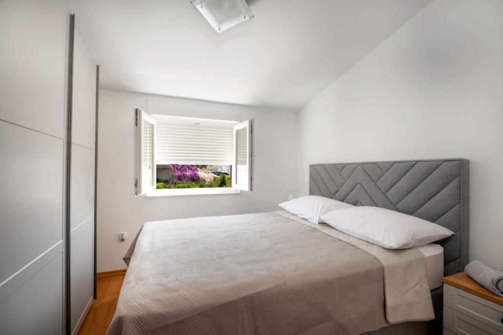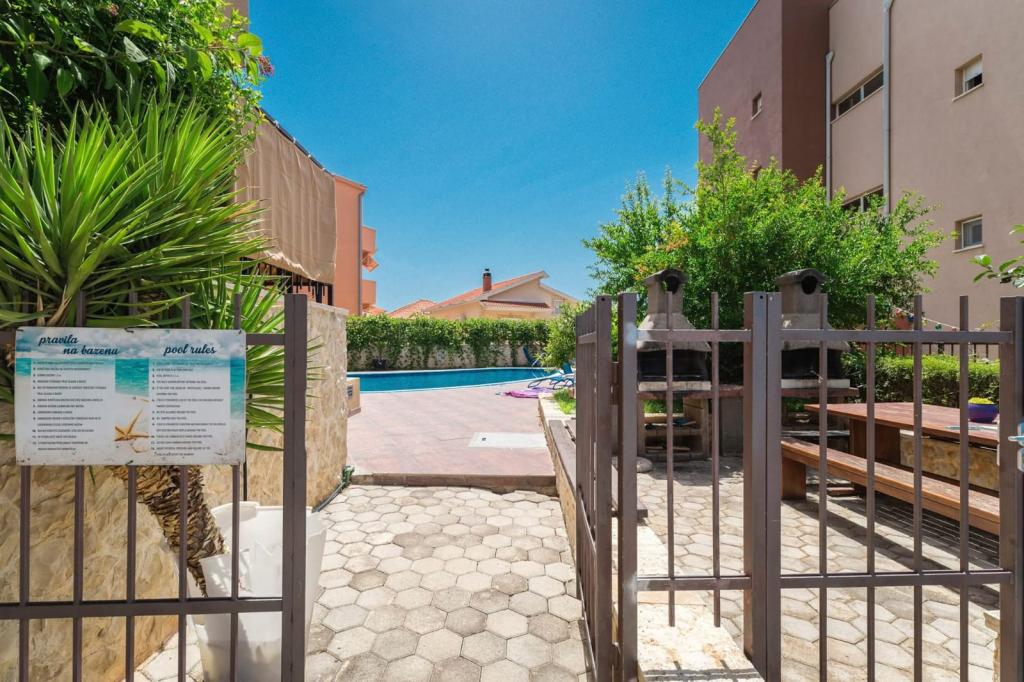 Die Ferienwohnung besteht aus zwei Schlafzimmern, einem Badezimmer, einer Küche, einem Wohnzimmer und einer Terrasse mit einer Gesamtfläche von 68 m². Jedes Zimmer verfügt über ein großes Doppelbett und Klimaanlage. Die Küche ist komplett ausgestattet, um leckere Mahlzeiten zuzubereiten. Die Wohnung befindet sich in einem ruhigen Teil der Insel. Der Campingplatz Rožac ist 150 m entfernt. Supermärkte, Restaurants und Bäckereien befinden sich in unmittelbarer Nähe. Ein eigener Parkplatz steht Ihnen zur Verfügung. Der Pool ist vom 15. Juni bis 15. September geöffnet und kann von 8:00 bis 20:00 Uhr genutzt werden.