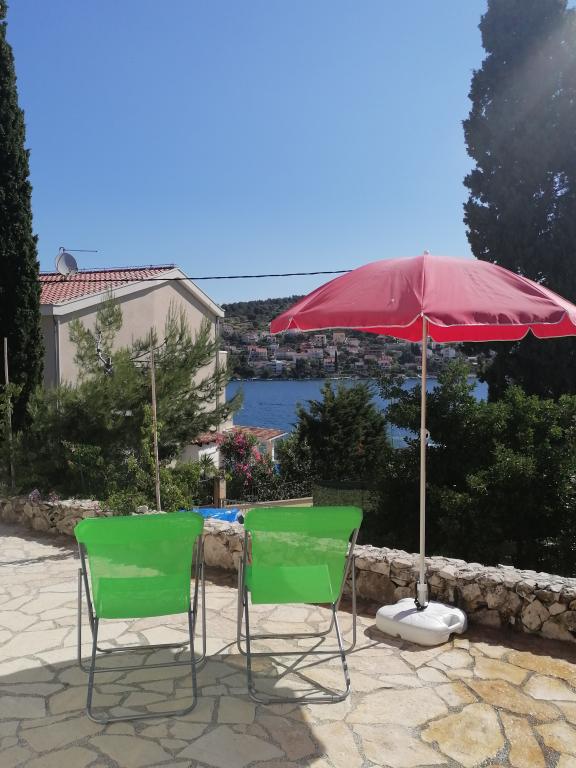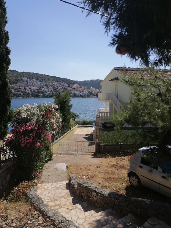 Das Apartment MARIVA, nur 25 m vom Meer entfernt, befindet sich in einem ruhigen Ort in Okrug Gornji auf der Insel ČIOVU, die durch zwei Brücken mit dem Festland verbunden ist. Es ist bezeichnend, dass die UNESCO-geschützte Stadt TROGIR nur 6 km entfernt ist und der Flughafen SPLIT 9 km entfernt ist. Die unabhängige Wohnung im Erdgeschoss des Familienhauses hat Ausgänge zu zwei Terrassen: die vordere sonnige mit Blick auf das Meer und die andere überdacht mit Blick auf den Garten. Die Wohnung besteht aus zwei Doppelzimmern, einer Eingangshalle mit Zustellbett, einer Küche mit Esszimmer und Wohnzimmer, einem Badezimmer mit Duschkabine, einer zusätzlichen Toilette und verfügt über WLAN und eine Klimaanlage. Die Anlage ist vom Grün eines großen Gartens mit mediterranen Pflanzen umgeben, der mit der Wohnung eine Einheit bildet, und der Gast fühlt sich wie in einem Einfamilienhaus. Er kann sich in einem Teil des Gartens aufhalten und sonnen, den Grill und die Außendusche nutzen, und das Pflücken von Feigen direkt vom Baum trägt zu dieser Atmosphäre bei. Das Angebot von hausgemachten Kuchen für Kinder und Getränken auf der Basis von autochthonen Früchten für Erwachsene ist während des Aufenthalts möglich. Neben den bereits erwähnten Vorteilen trägt diese Begrüßung zusätzlich dazu bei, dass das Mariva Apartment neue und wiederkehrende alte Gäste anzieht.