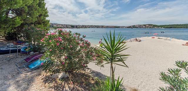 Am nahegelegenen Strand können Sie ein Boot, einen Roller, ein Tretboot, Sonnenliegen und Sonnenschirme mieten oder organisierte Ausflüge zu den nahegelegenen Inseln unternehmen. Es gibt auch eine Bootslinie, die täglich alle 20 Minuten nach Trogir fährt.