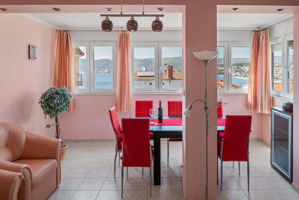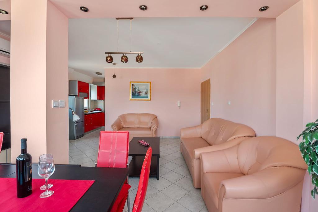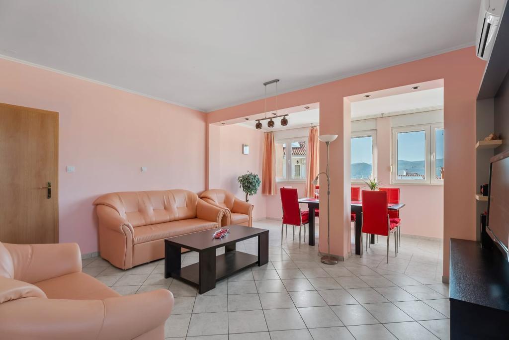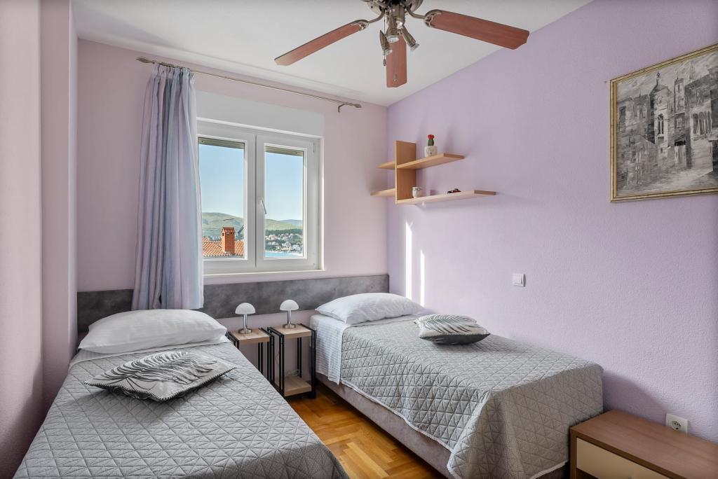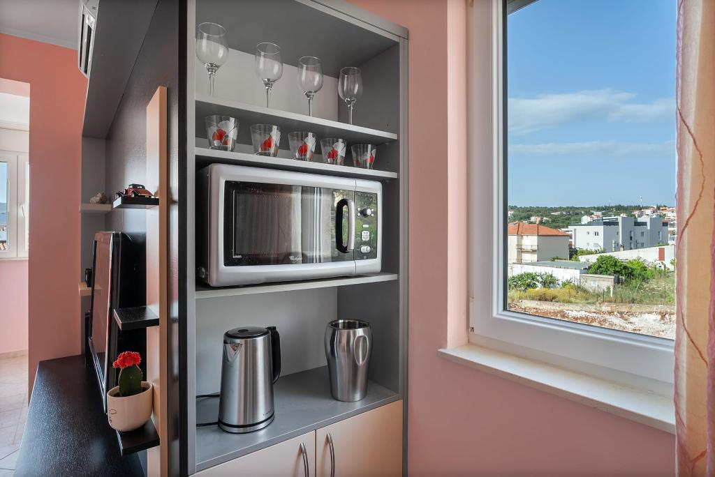 Das Apartment Summer Memories ist ein geräumiges und modern eingerichtetes Apartment im 2. Stock eines Gebäudes mit Meerblick, 15 Autominuten vom internationalen Flughafen entfernt. Das Apartment liegt in der Nähe wunderschöner Kieselstrände, die sich bis zur Altstadt von Trogir erstrecken. Der nächste Strand ist 4 Gehminuten entfernt. Das Apartment verfügt über einen Balkon, auf dem Sie Ihren Morgenkaffee und den Meerblick genießen können. Es verfügt über 2 Schlafzimmer, eines davon bietet die Möglichkeit, 2 Betten zu einem Doppelbett zu kombinieren. In der Wohnung gibt es 2 Klimaanlagen. Für Ihr Fahrzeug steht Ihnen vor dem Gebäude ein gesicherter Parkplatz zur Verfügung. In der Nähe befinden sich: ein Supermarkt, Cafés und Restaurants am Strand.