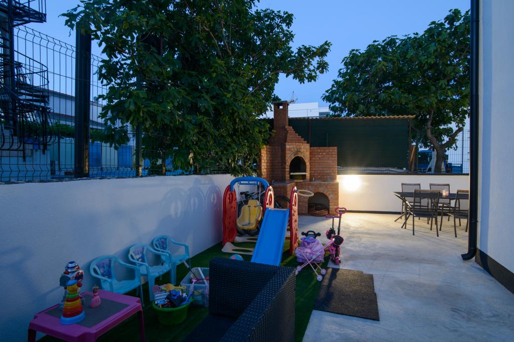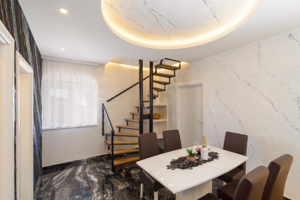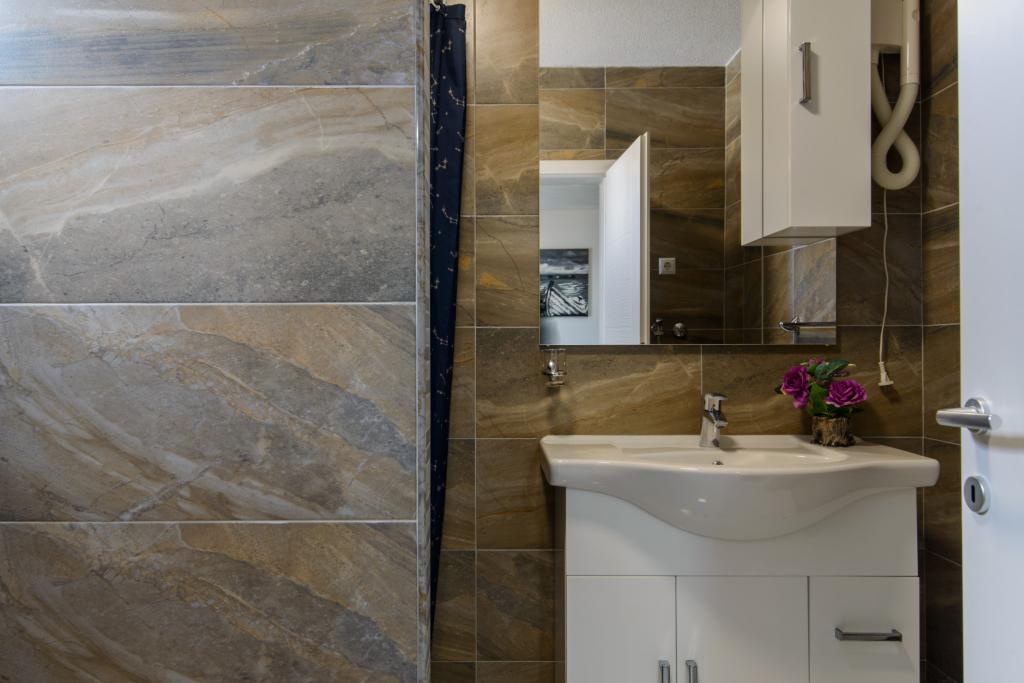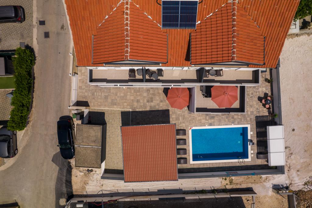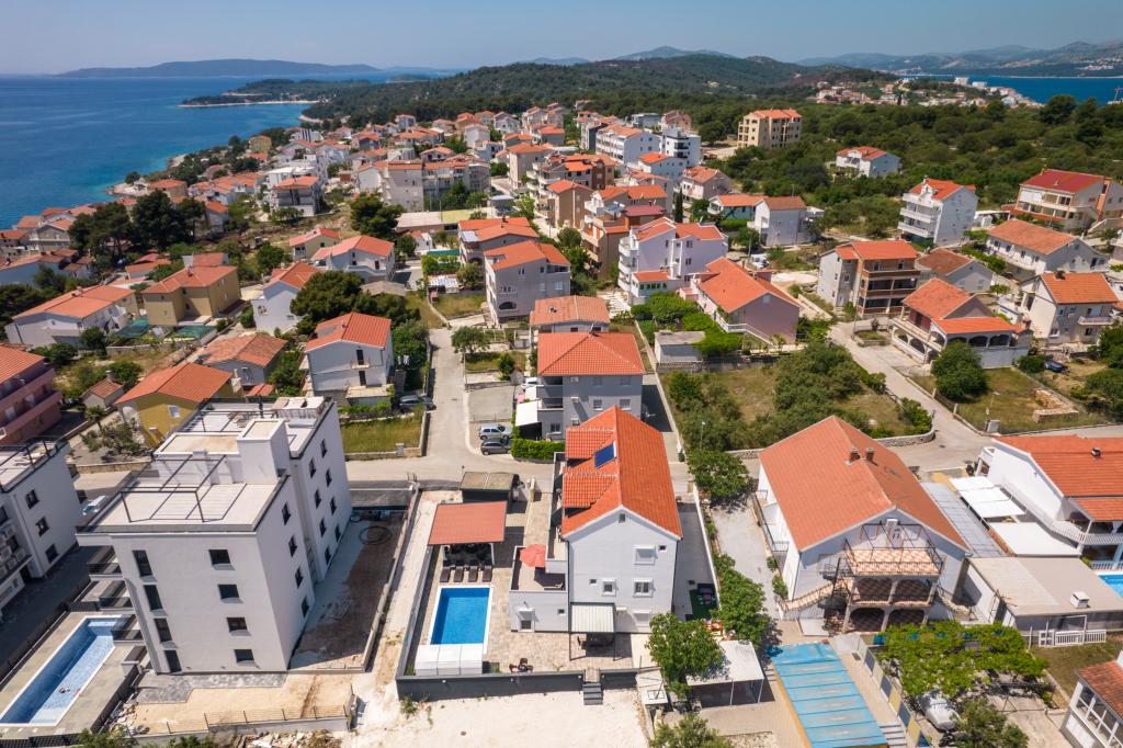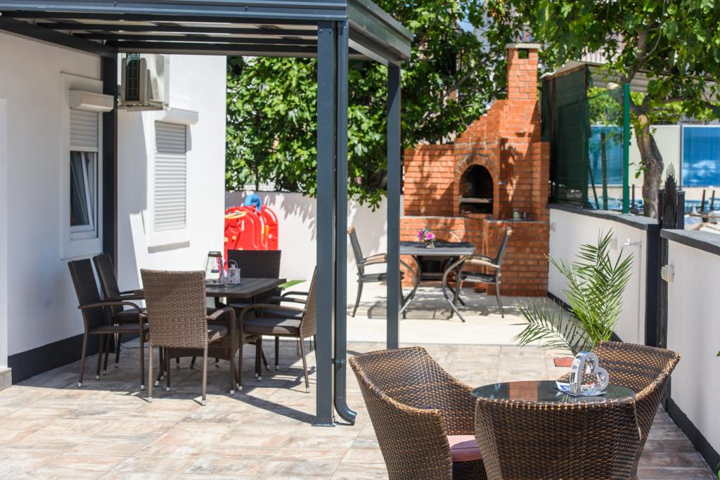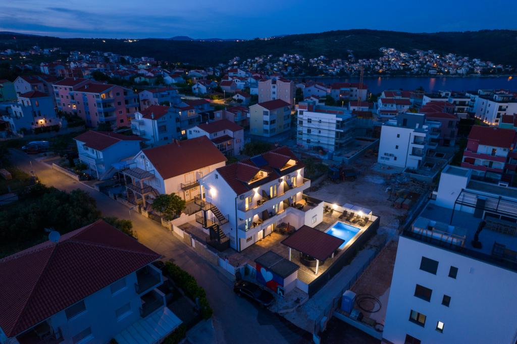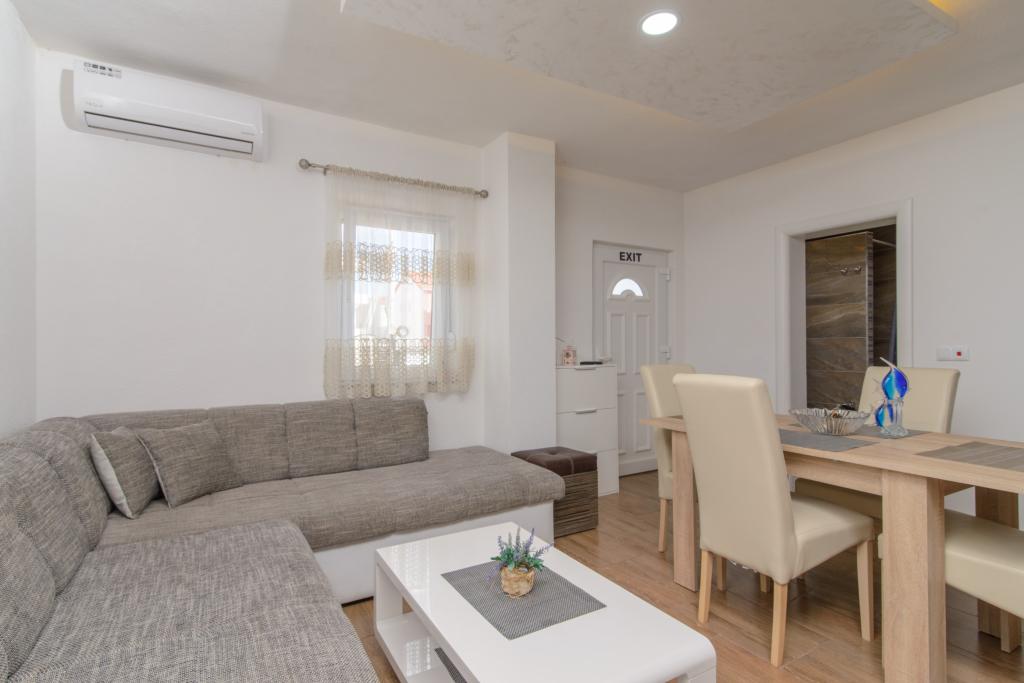Die Apartments befinden sich im neu ausgestatteten Villi ET A in der Stadt Okrug Gornji auf der Insel Ciovo, die mit der historischen Stadt Trogir verbunden ist. Komplett und neu ausgestattete Apartments im schönen Teil der Insel Ciovo. Nur 70 m vom Meer entfernt. Vor der Wohnung befindet sich ein Swimmingpool und ein großer Grill. Die Wohnungen enthalten alles, was Sie für einen Familienurlaub mit Kindern oder Freunden benötigen. Die Villa wurde im Jahr 2017 gebaut und enthält sieben Wohnungen, alle modern und für den Tourismus angepasst. Die Unterkunft liegt einen 10-minütigen Spaziergang vom Zentrum der Stadt entfernt, wo Sie finden: Krankenwagen, Apotheke, Post, verschiedene Marken, Getränke mit frischen Lebensmitteln, eine Reihe von Restaurants und Cafés und der berühmte Copacabana Strand. Und nur 3, 5 km vom Zentrum von Trogir können Sie mit dem Auto, Bus oder Boot fahren. Wir wünschen allen Gästen einen angenehmen und angenehmen Sommer.