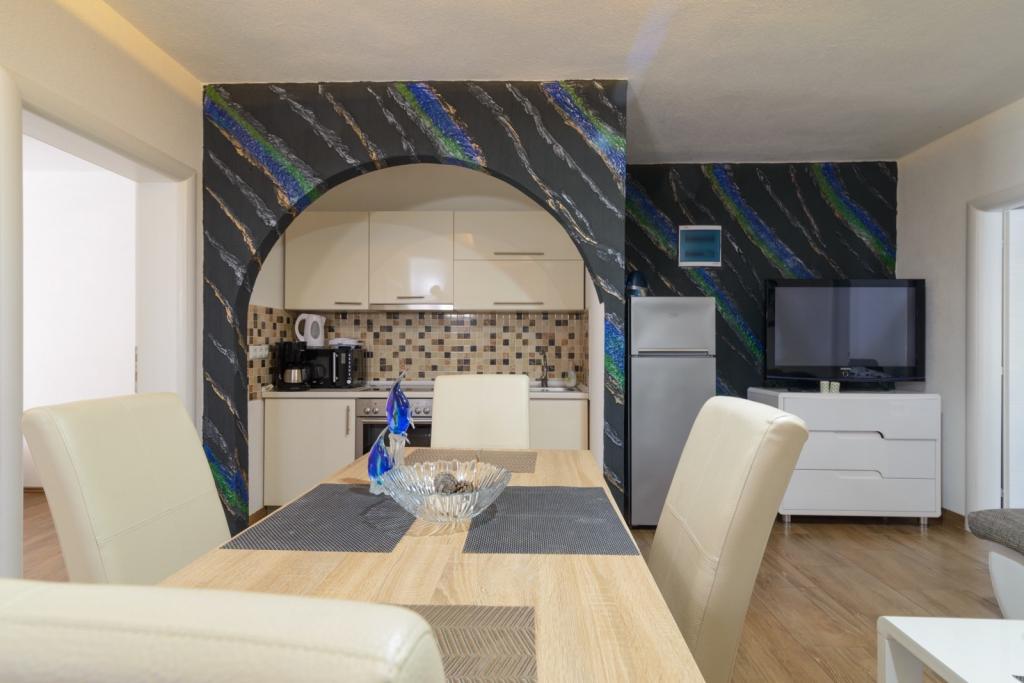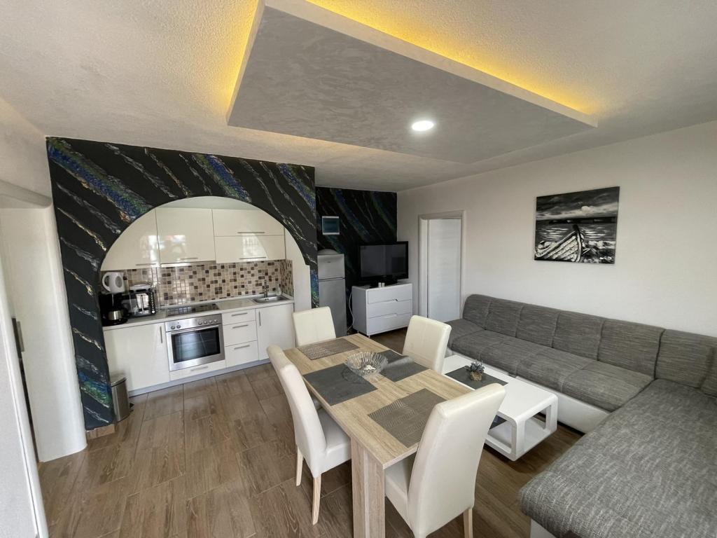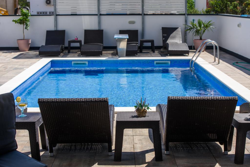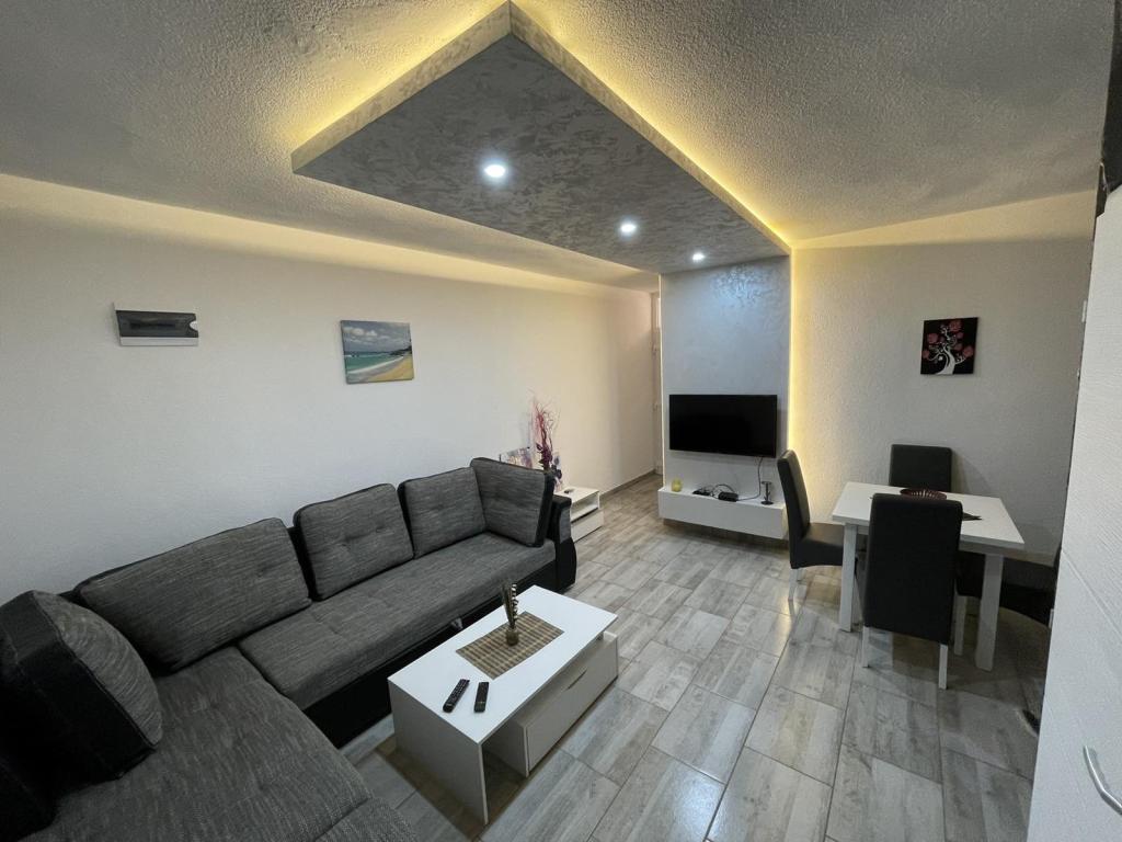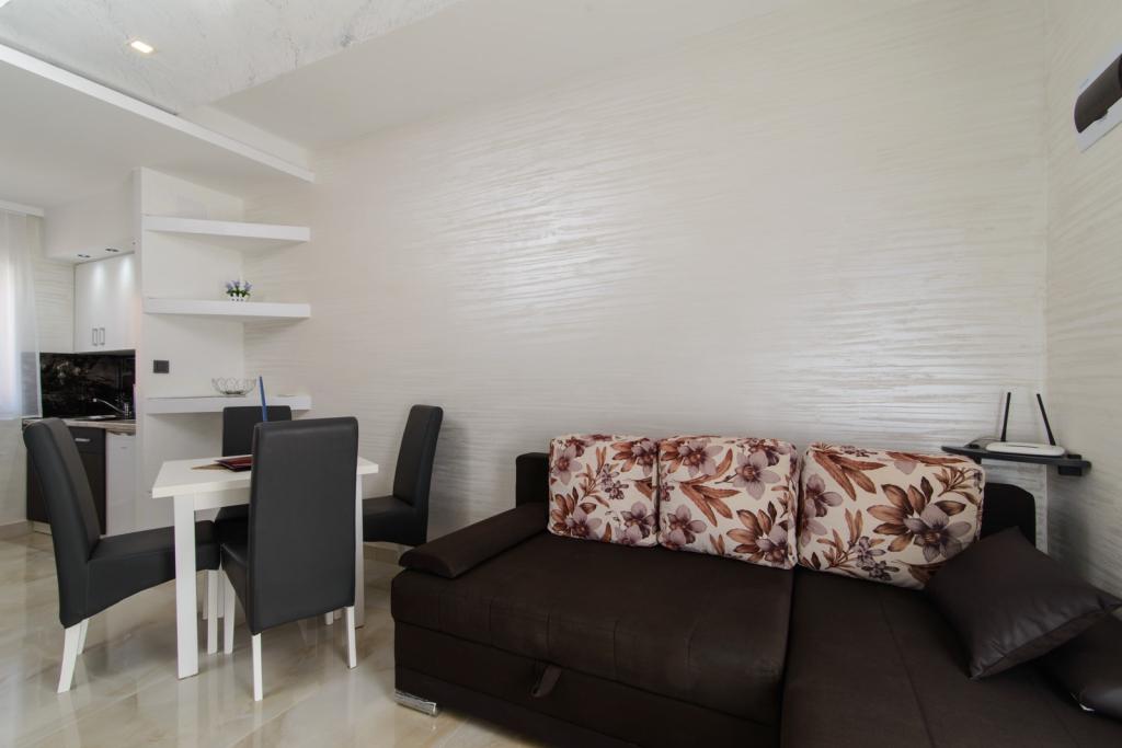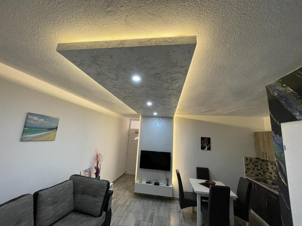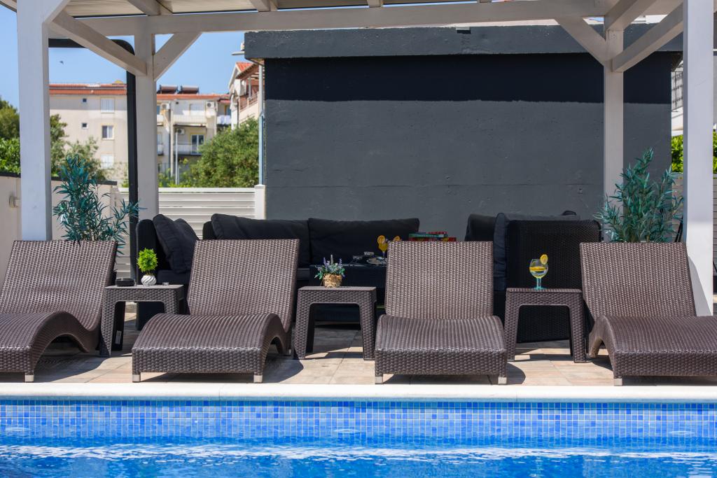 Die Apartments befinden sich im neu ausgestatteten Villi ET A in der Stadt Okrug Gornji auf der Insel Ciovo, die mit der historischen Stadt Trogir verbunden ist. Komplett und neu ausgestattete Apartments im schönen Teil der Insel Ciovo. Nur 70 m vom Meer entfernt. Vor der Wohnung befindet sich ein Swimmingpool und ein großer Grill. Die Wohnungen enthalten alles, was Sie für einen Familienurlaub mit Kindern oder Freunden benötigen. Die Villa wurde im Jahr 2017 gebaut und enthält sieben Wohnungen, alle modern und für den Tourismus angepasst. Die Unterkunft liegt einen 10-minütigen Spaziergang vom Zentrum der Stadt entfernt, wo Sie finden: Krankenwagen, Apotheke, Post, verschiedene Marken, Getränke mit frischen Lebensmitteln, eine Reihe von Restaurants und Cafés und der berühmte Copacabana Strand. Und nur 3, 5 km vom Zentrum von Trogir können Sie mit dem Auto, Bus oder Boot fahren. Wir wünschen allen Gästen einen angenehmen und angenehmen Sommer.