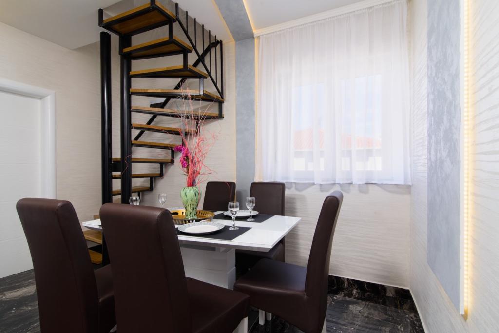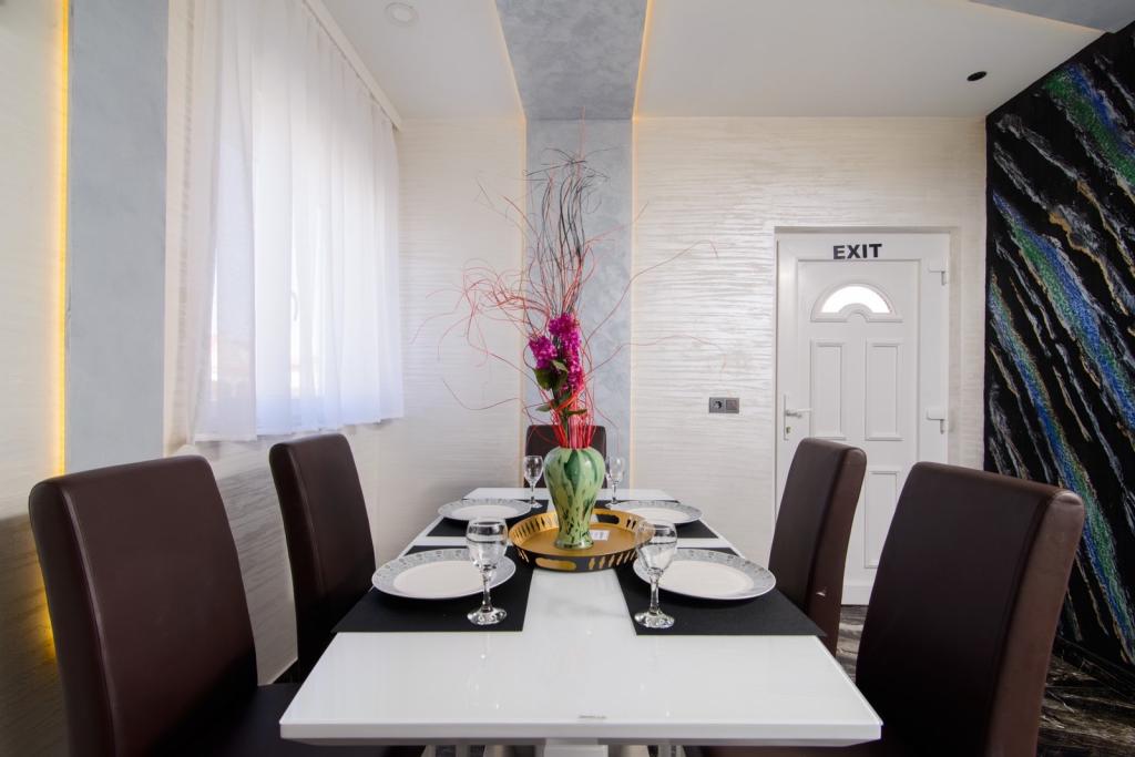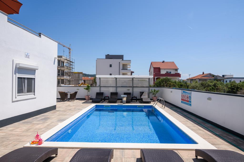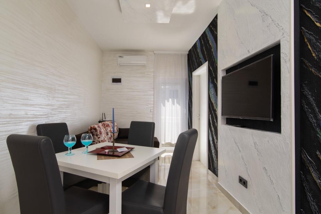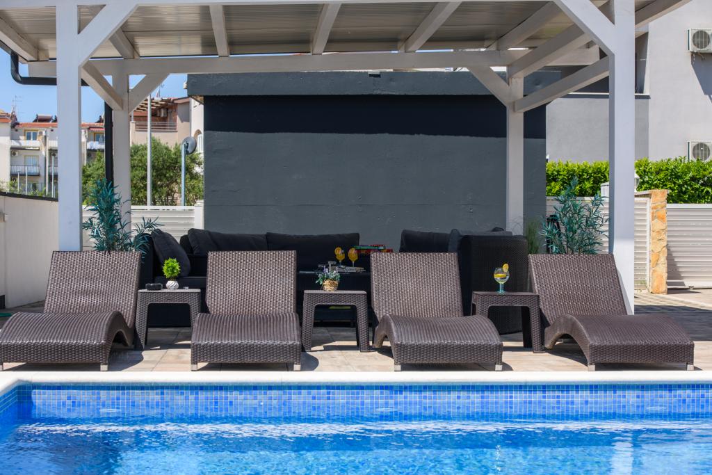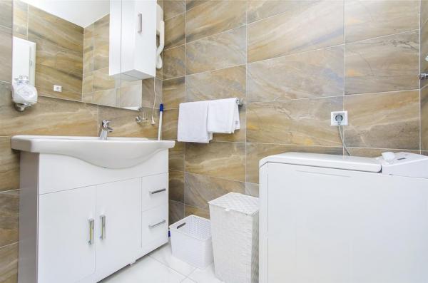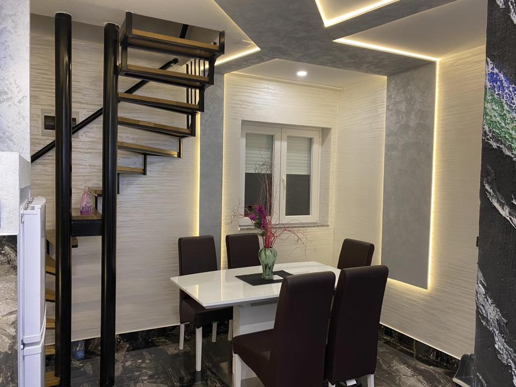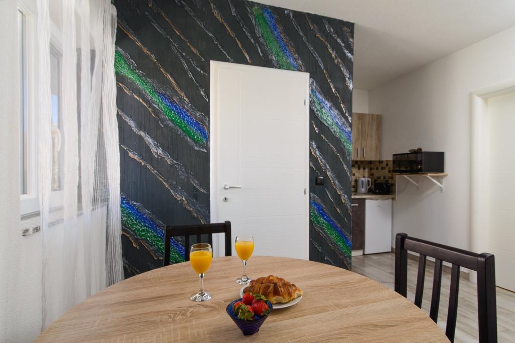 Die Apartments befinden sich im neu ausgestatteten Villi ET A in der Stadt Okrug Gornji auf der Insel Ciovo, die mit der historischen Stadt Trogir verbunden ist. Komplett und neu ausgestattete Apartments im schönen Teil der Insel Ciovo. Nur 70 m vom Meer entfernt. Vor der Wohnung befindet sich ein Swimmingpool und ein großer Grill. Die Wohnungen enthalten alles, was Sie für einen Familienurlaub mit Kindern oder Freunden benötigen. Die Villa wurde im Jahr 2017 gebaut und enthält sieben Wohnungen, alle modern und für den Tourismus angepasst. Die Unterkunft liegt einen 10-minütigen Spaziergang vom Zentrum der Stadt entfernt, wo Sie finden: Krankenwagen, Apotheke, Post, verschiedene Marken, Getränke mit frischen Lebensmitteln, eine Reihe von Restaurants und Cafés und der berühmte Copacabana Strand. Und nur 3, 5 km vom Zentrum von Trogir können Sie mit dem Auto, Bus oder Boot fahren. Wir wünschen allen Gästen einen angenehmen und angenehmen Sommer.
