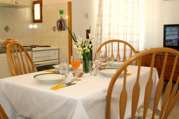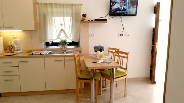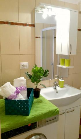 Dieses geräumige und komfortable Apartment (65 m2) besteht aus zwei Schlafzimmern und zwei Badezimmern, was es ideal für Familien oder kleine Gruppen junger Leute macht. Die Wohnung bietet Platz für bis zu 5 Personen. Der Raum ist sorgfältig mit angenehmen Details dekoriert und bietet den Gästen die Möglichkeit für einen entspannten Urlaub mit allen verfügbaren Annehmlichkeiten. In der Wohnung genießen Sie eine angenehme Atmosphäre mit einem Flachbild-TV, einem bequemen Sofa, ein idealer Ort, um den Tag mit Ihrem Lieblingsfilm ausklingen zu lassen, Musik zu hören oder ein gutes Buch zu lesen. Der Speisesaal ist mit einem bequemen Tisch ausgestattet, an dem unsere Gäste bei einer frisch zubereiteten Mahlzeit mit Freunden und Familie zusammensitzen können. Die voll ausgestattete Küche bietet alles, was Sie zum Zubereiten von Mahlzeiten benötigen. Die Terrasse ist der attraktivste Teil des Apartmenterlebnisses. Es ist mit einem Bistrotisch mit zwei Stühlen ausgestattet und bietet Ihnen die Möglichkeit, ein romantisches Frühstück oder Abendessen zu genießen oder sich einfach nur zu unterhalten und Ihre Besuche in der Altstadt und an den schönen Stränden zu planen.