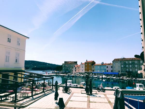Apartment und Zimmer mit Bad befinden sich im Zentrum der Stadt Cres und haben einen herrlichen Blick auf das Meer und der Promenade entfernt.