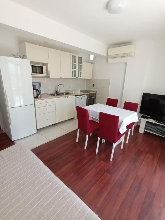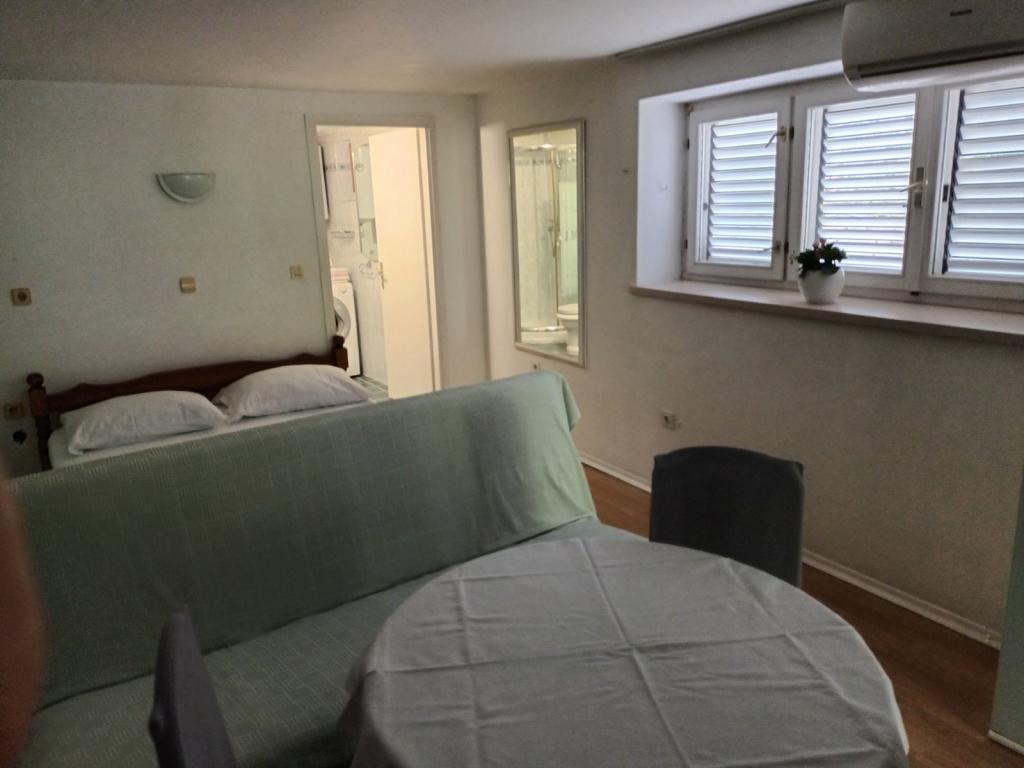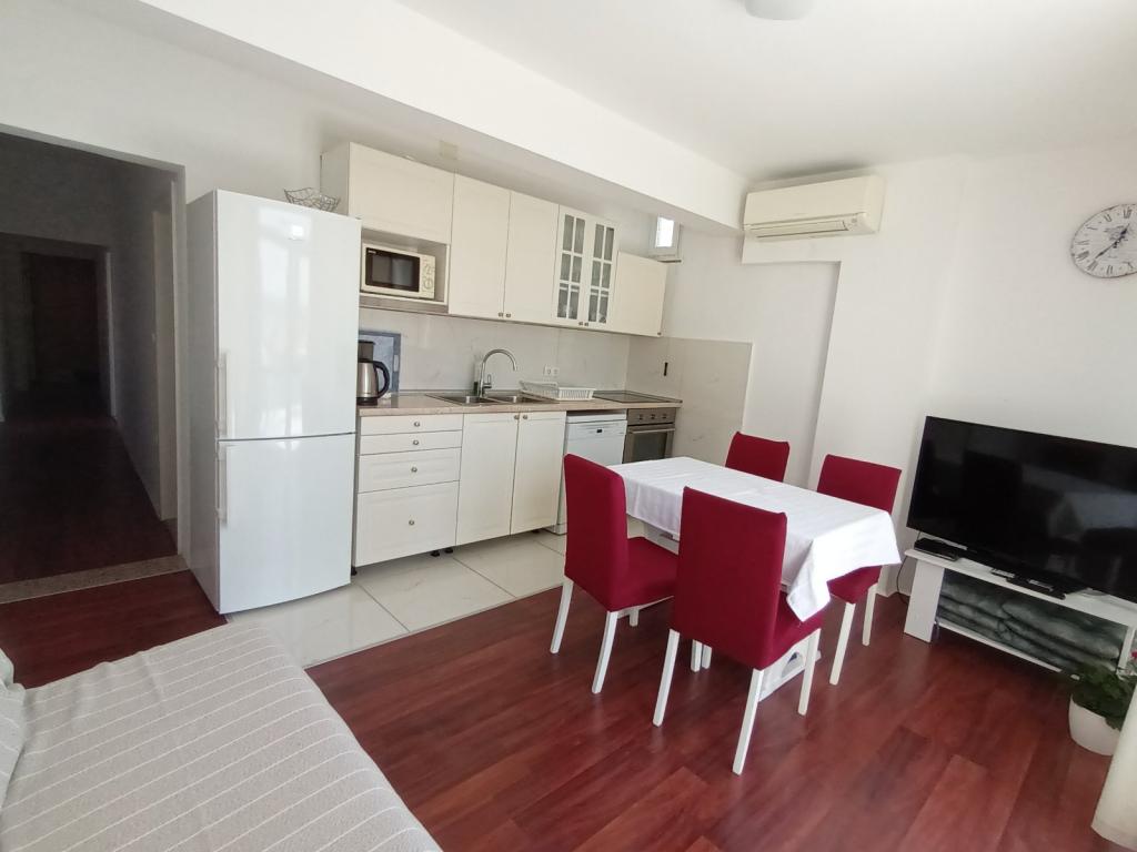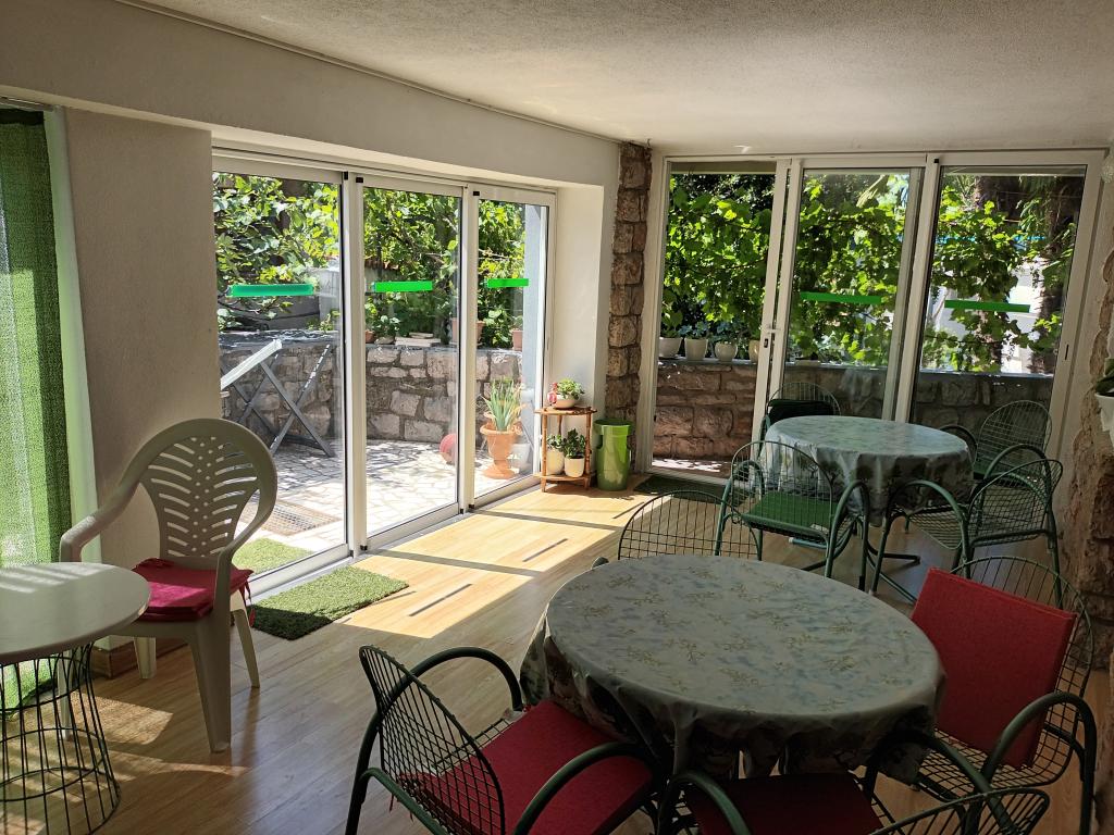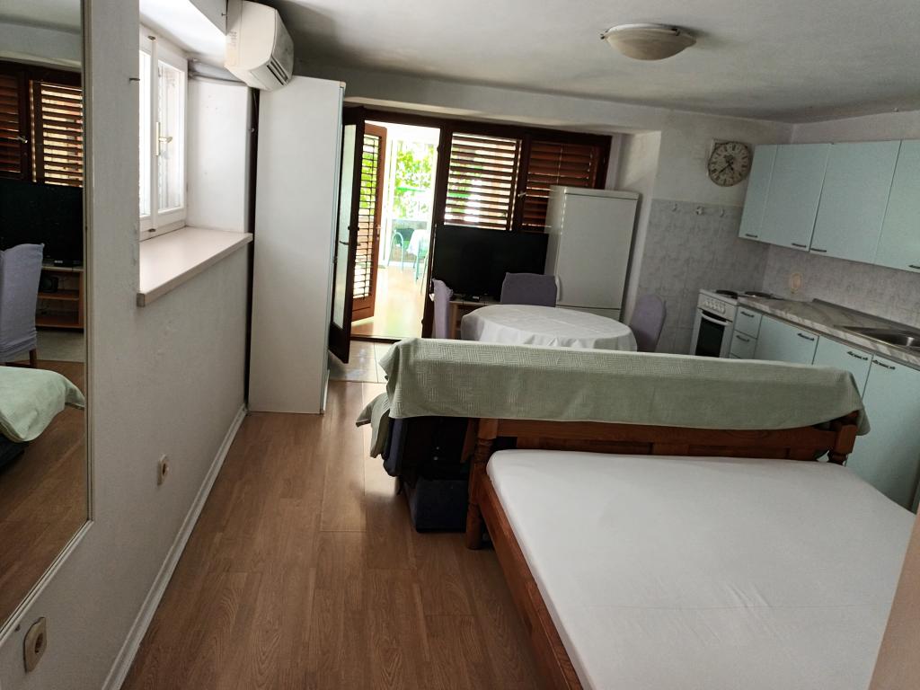 Crikvenica, zentrumsnah, nur fünf Gehminuten vom Strand und zehn Gehminuten vom Markt, Busbahnhof und Hauptplatz entfernt. Genießen Sie den Blick ins Grüne vom ersten Stock und aufs Meer. Parkmöglichkeiten finden Sie auf unserem Parkplatz am Haus, im Hof oder an der Straße entlang des Zauns.