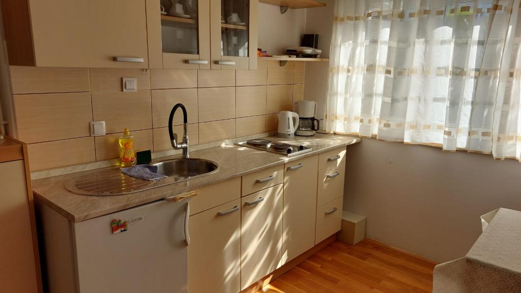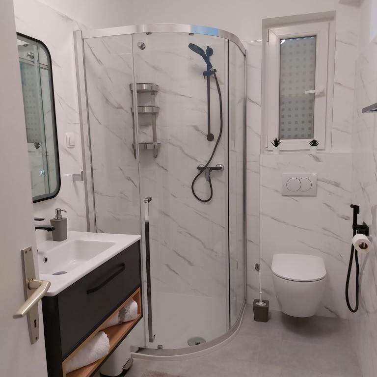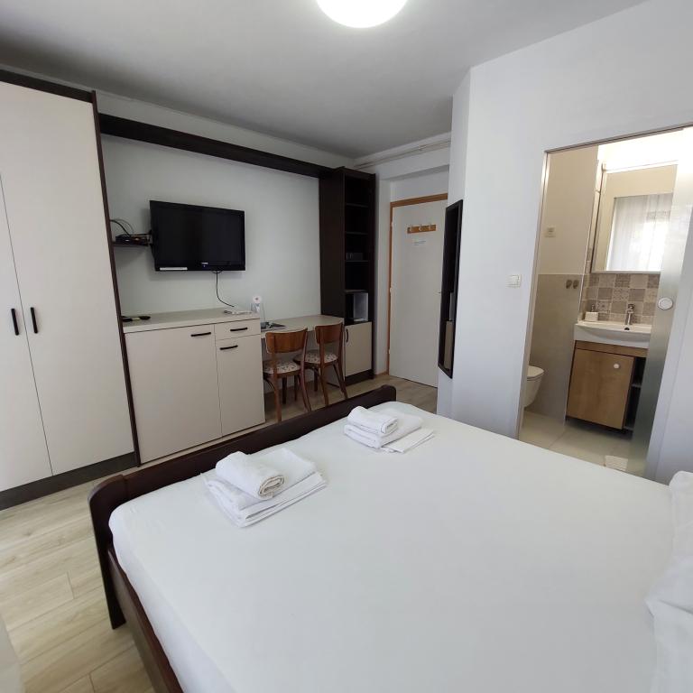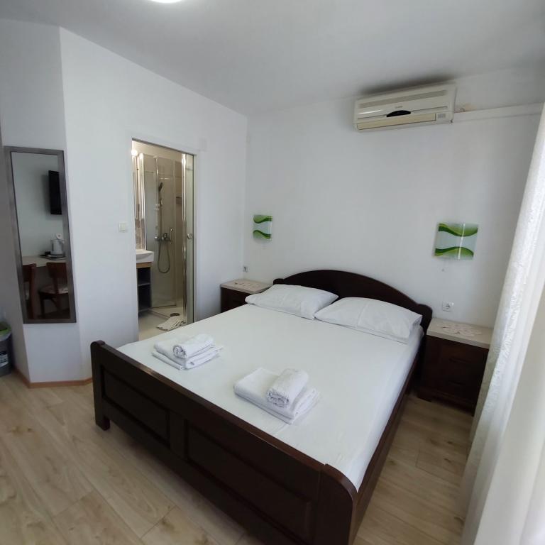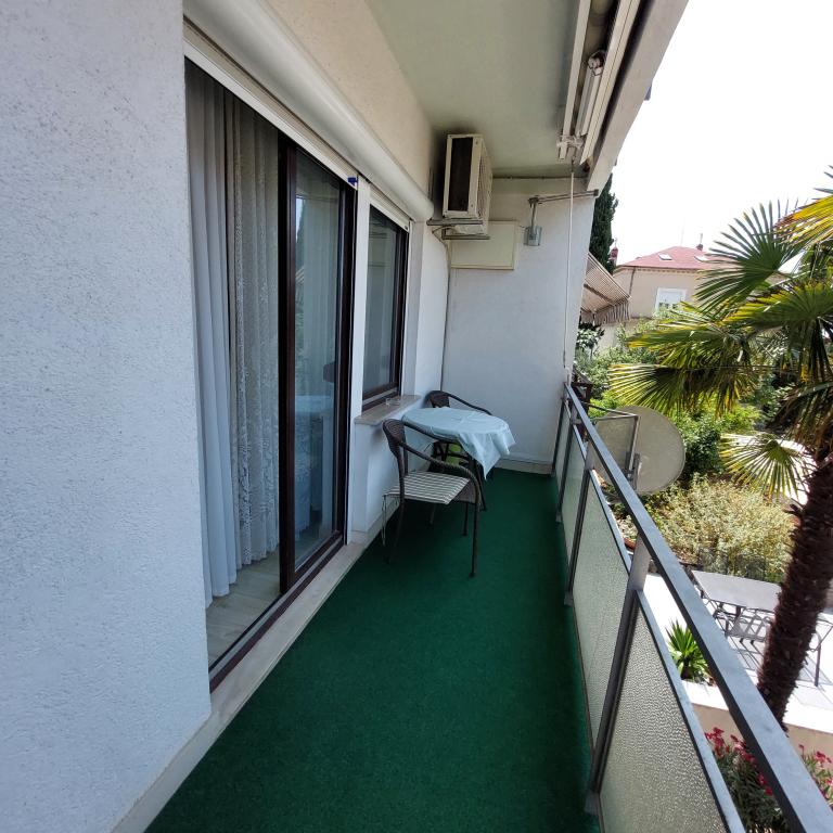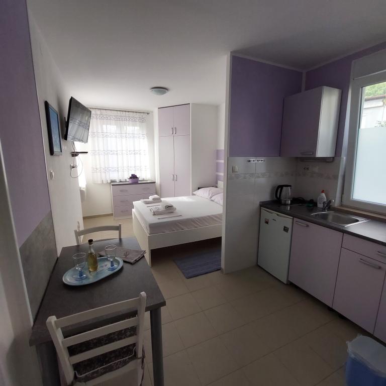 Sehr gut eingerichtete Apartments, nur 50 Meter vom Meer entfernt. Es gibt gesicherte Parkplätze im Hof. Auf Anfrage kann ein zusätzliches Kinderbett aufgestellt werden. Für Erwachsene sind keine Zustellbetten verfügbar.