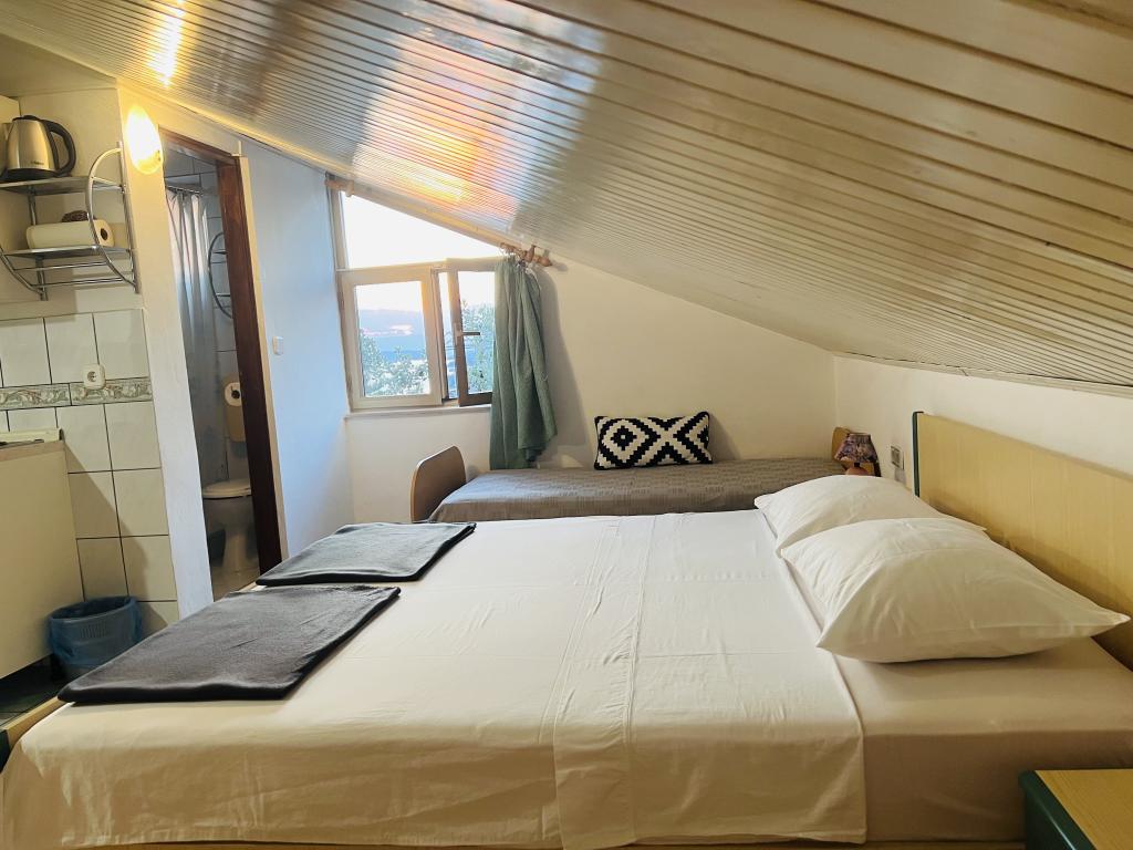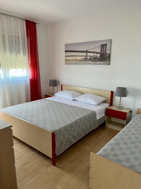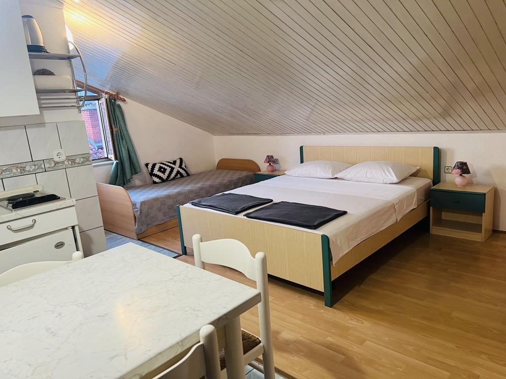 Wir haben unseren Sommer 2019 bei der Familie Mataija verbracht. Die Gastgeber sind sehr gastfreundlich und immer bereit, Sie kennenzulernen. Sie haben einen wunderschönen Garten, wo Kinder sicher spielen können, und es gibt auch einen Grill, wo Sie Essen zubereiten können. Ein großer Vorteil ist, dass Sie Ihr Auto im Hof oder vor dem Haus parken können. Die Apartments sind komplett mit allem ausgestattet, was Sie für Ihren Aufenthalt benötigen, und in der Nähe befinden sich auch große Handelsketten. Die einzige Schwierigkeit kann der Rückweg vom Strand sein, da man bergauf klettern muss.