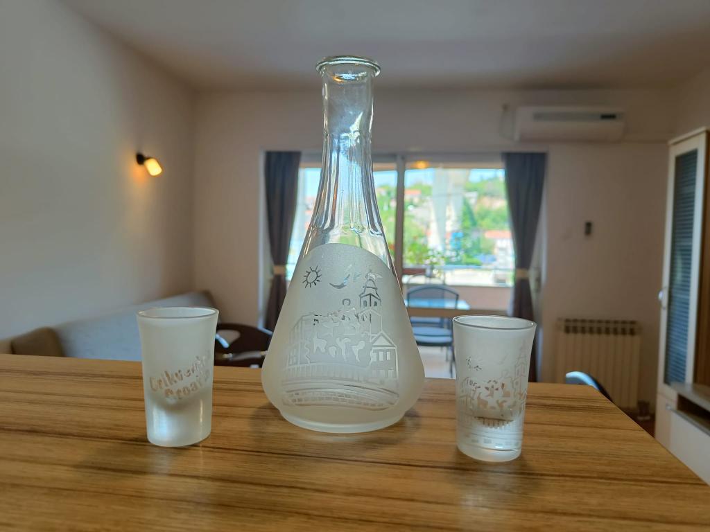 Als Willkommensgeschenk können Sie unseren hausgemachten Brandy nach Familienrezept verkosten.