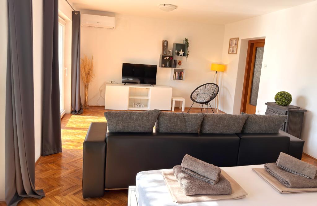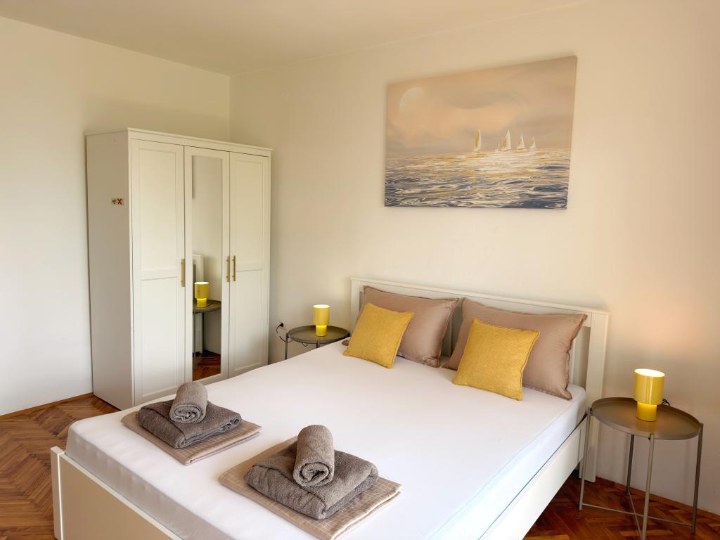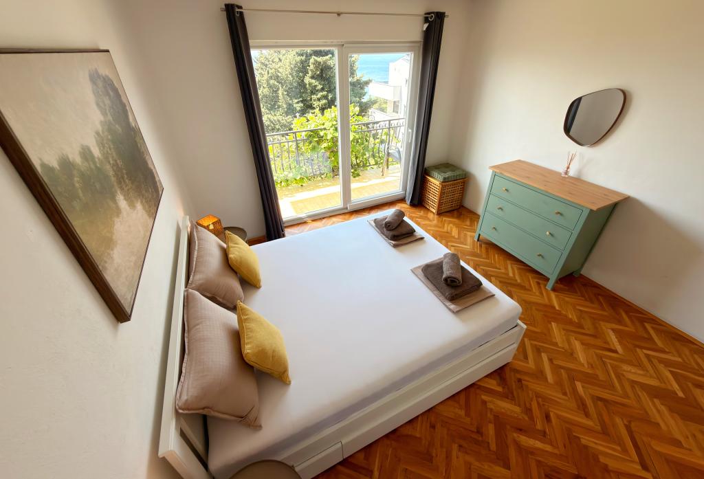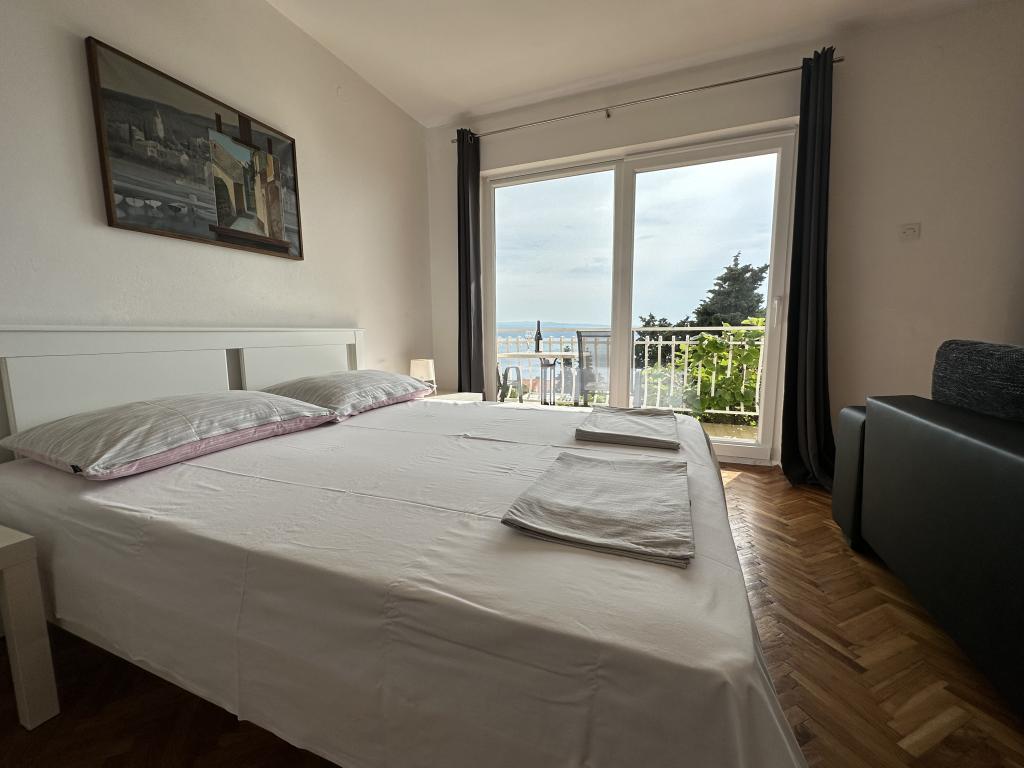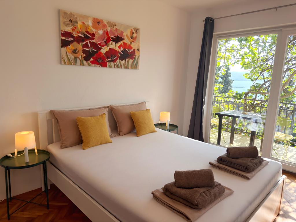 Die Apartments Matejčić befinden sich in Crikvenica, Prćavac 8 – nur 350 Meter (7 Gehminuten) vom Sandstrand Crni Mol entfernt. Diese geräumigen Apartments bieten Platz für bis zu fünf Personen und bestehen aus zwei separaten Schlafzimmern, einem Wohnzimmer, einer voll ausgestatteten Küche und einem Badezimmer. Jedes Apartment verfügt über eine Terrasse mit herrlichem Meerblick, auf der Sie entspannte Momente genießen und die schöne Landschaft bewundern können. Die Apartments sind mit allem Komfort für einen angenehmen Aufenthalt ausgestattet. Die Lage ist ideal: Strandnähe und gleichzeitig Ruhe und Abgeschiedenheit. In der Nähe finden Sie Geschäfte, Restaurants und weitere touristische Attraktionen, die Sie während Ihres Aufenthalts erkunden können.