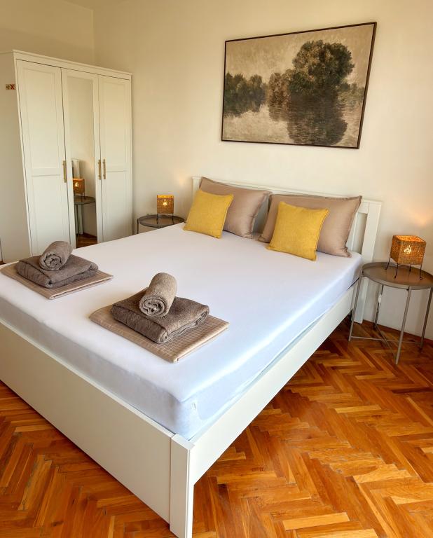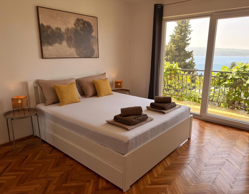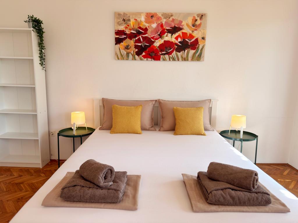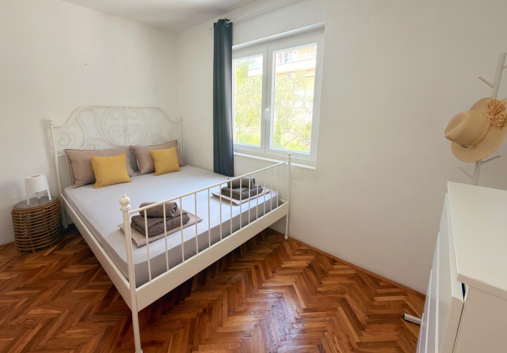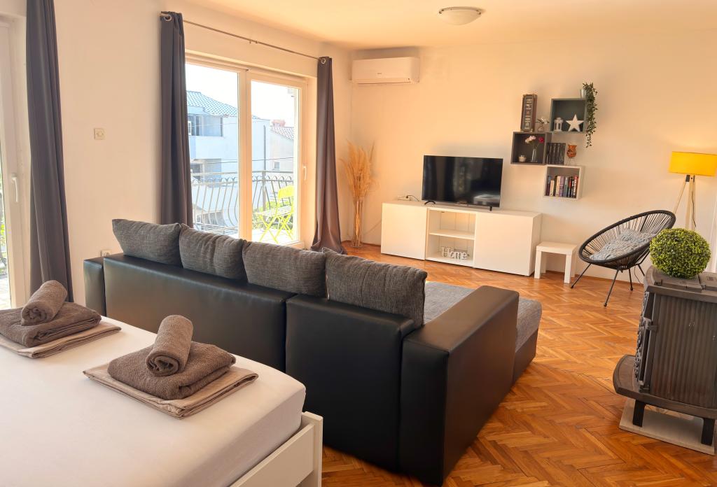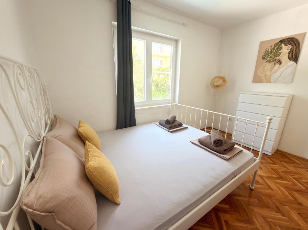 Die Apartments Matejčić befinden sich in Crikvenica, Prćavac 8 – nur 350 Meter (7 Gehminuten) vom Sandstrand Crni Mol entfernt. Diese geräumigen Apartments bieten Platz für bis zu fünf Personen und bestehen aus zwei separaten Schlafzimmern, einem Wohnzimmer, einer voll ausgestatteten Küche und einem Badezimmer. Jedes Apartment verfügt über eine Terrasse mit herrlichem Meerblick, auf der Sie entspannte Momente genießen und die schöne Landschaft bewundern können. Die Apartments sind mit allem Komfort für einen angenehmen Aufenthalt ausgestattet. Die Lage ist ideal: Strandnähe und gleichzeitig Ruhe und Abgeschiedenheit. In der Nähe finden Sie Geschäfte, Restaurants und weitere touristische Attraktionen, die Sie während Ihres Aufenthalts erkunden können.
