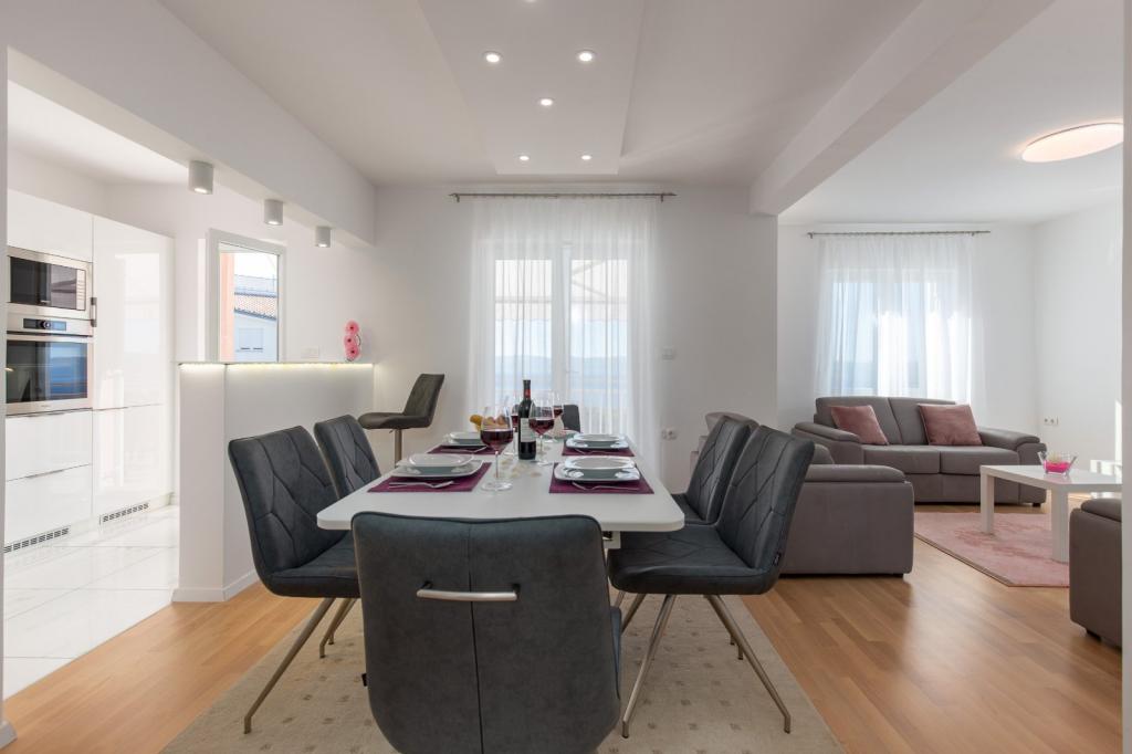 Die Apartments Nicol befinden sich in Crikvenica und bieten einen wunderschönen Blick auf das Meer und die Insel Krk. Die Apartments Nicol sind ein neu renoviertes Gebäude mit zwei modernen Apartments. Die Anlage befindet sich in einem ruhigen Teil der Stadt. Innerhalb des Gebäudes gibt es einen Parkplatz neben dem Gebäude, eine große Terrasse und einen Grill. Gegenüber dem Gebäude befindet sich ein Kinderspielplatz, der mit einem Zaun eingezäunt und für Kinder sicher ist. Die Küche ist mit allen Geräten (Geschirrspüler, Backofen, Mikrowelle, Kühlschrank mit Gefrierfach, Kaffeemaschine, Induktionskochfeld) und Utensilien für die Zubereitung von Mahlzeiten ausgestattet.