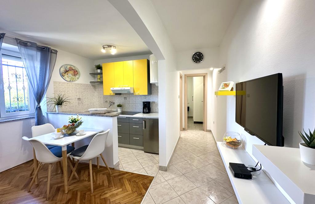 Kurtaxe ist im Preis inbegriffen.Alles war außergewöhnlich. Die Vermieterin hat uns herzlich empfangen. Die Wohnung war sauber, ordentlich und gut ausgestattet. Wir hatten alles, was wir brauchten. Die Kinder freuten sich sehr über die Süßigkeiten, die sie im Kühlschrank erwarteten, sowie über Saft, Wasser und Eistee. Eine schöne Geste des Besitzers. Die Geschäfte Plodine und Konzum liegen in der Nähe. Der Strand ist ebenfalls in der Nähe. Wir gingen zu jedem einzelnen zu Fuß. Ich habe nur lobende Worte. Solche phänomenalen Gastgeber sind heutzutage selten. Dank Ihnen hatten wir einen unvergesslichen Sommerurlaub. Danke schön.