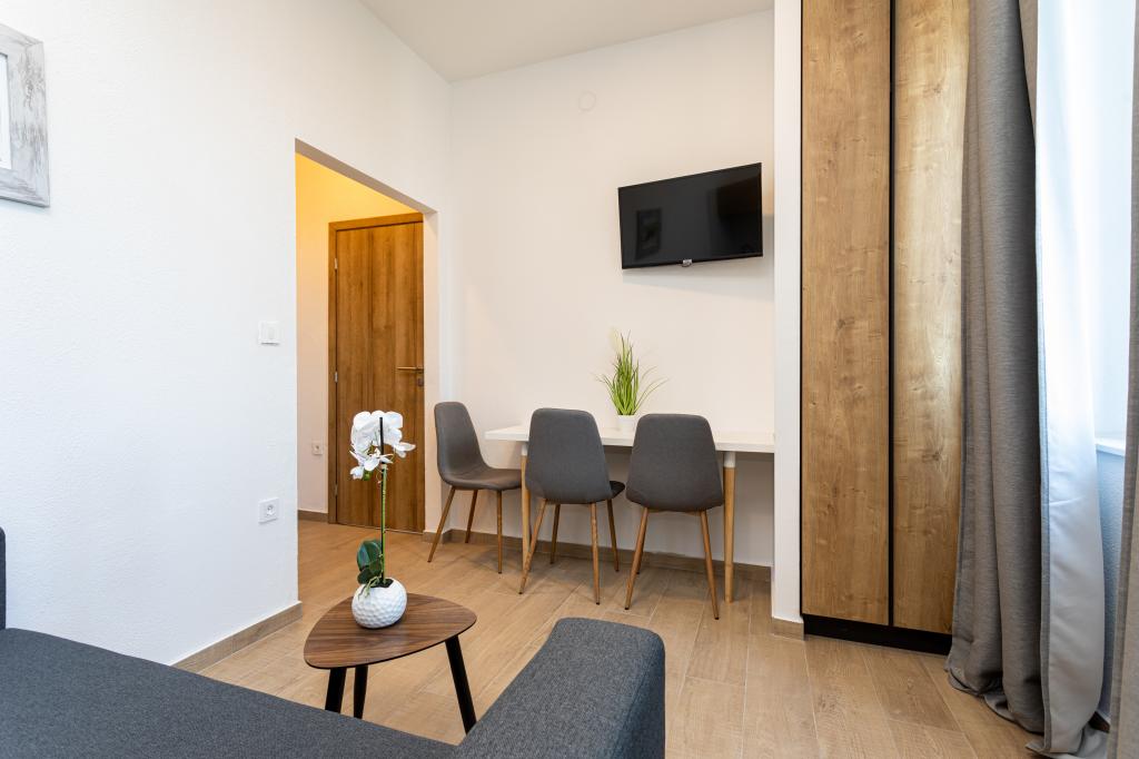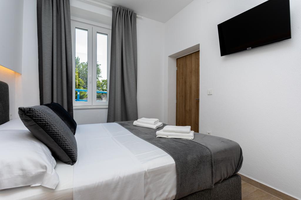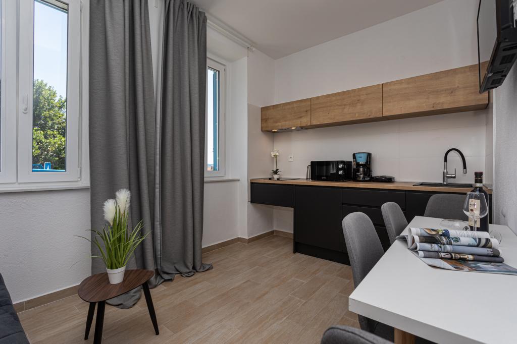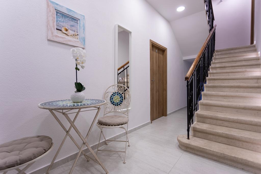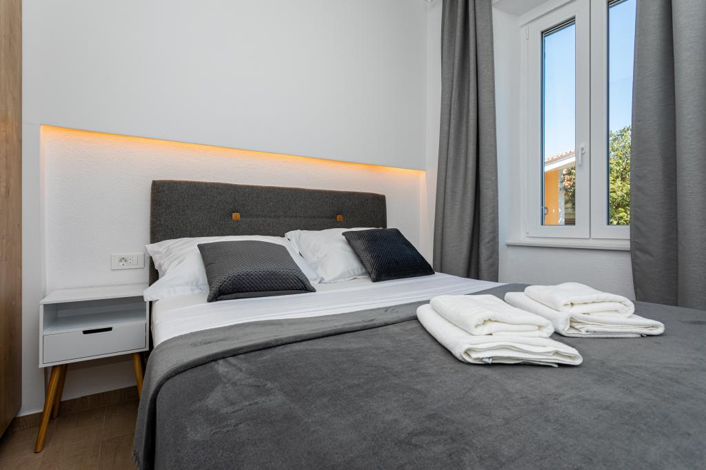 Die Apartments „SAN LEOPOLDO“ befinden sich im Zentrum von Crikvenica, 100 m vom Strand entfernt. In einer Entfernung von 100 m gibt es alle notwendigen Einrichtungen wie Märkte, Restaurants, Cafés und alles andere. Jede Wohnung im Gebäude verfügt über eine eigene private Terrasse, die mit dem Zwitschern der Vögel völlige Ruhe ohne Lärm und Aufregung bietet. Die Anlage verfügt außerdem über einen großen Garten mit einem großen Steingrill, der den Gästen zur Verfügung steht, sowie über ein Dutzend Palmen und verschiedene andere Bäume und Pflanzen, die für viel Ruhe im Urlaub sorgen. Die Anlage verfügt auch über einen eigenen Privatparkplatz. Liebe Gäste, die Appartements „SAN LEOPOLDO“ wünschen Ihnen einen angenehmen Empfang!!!