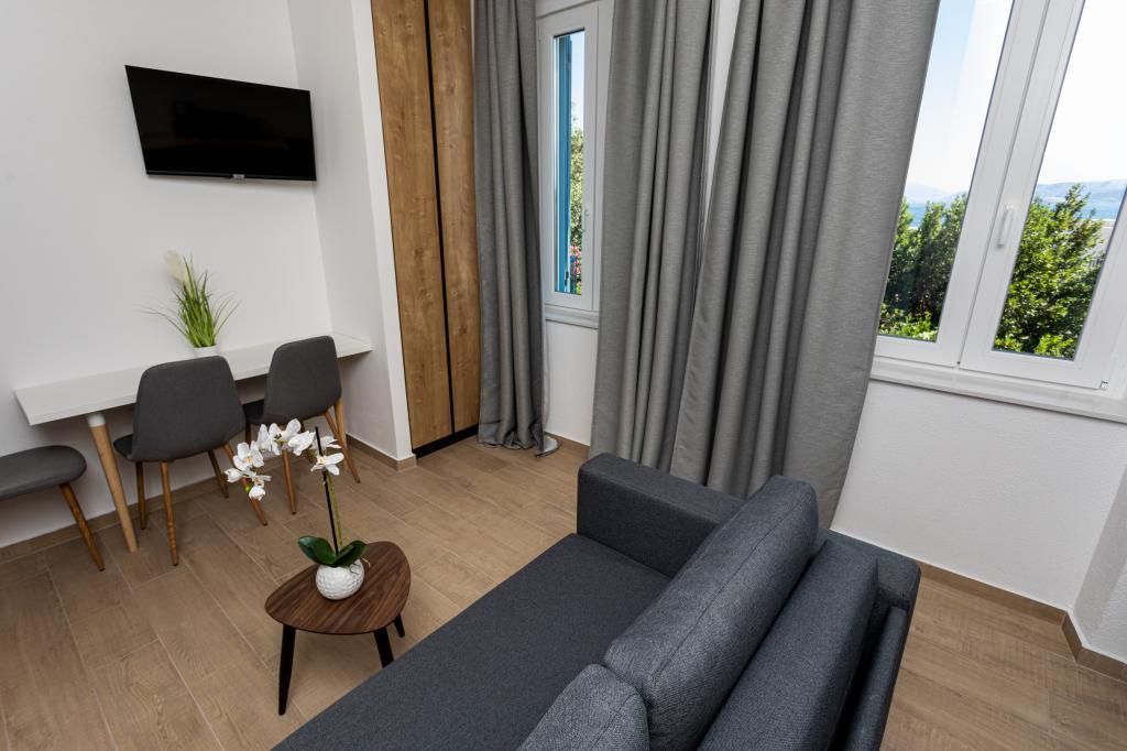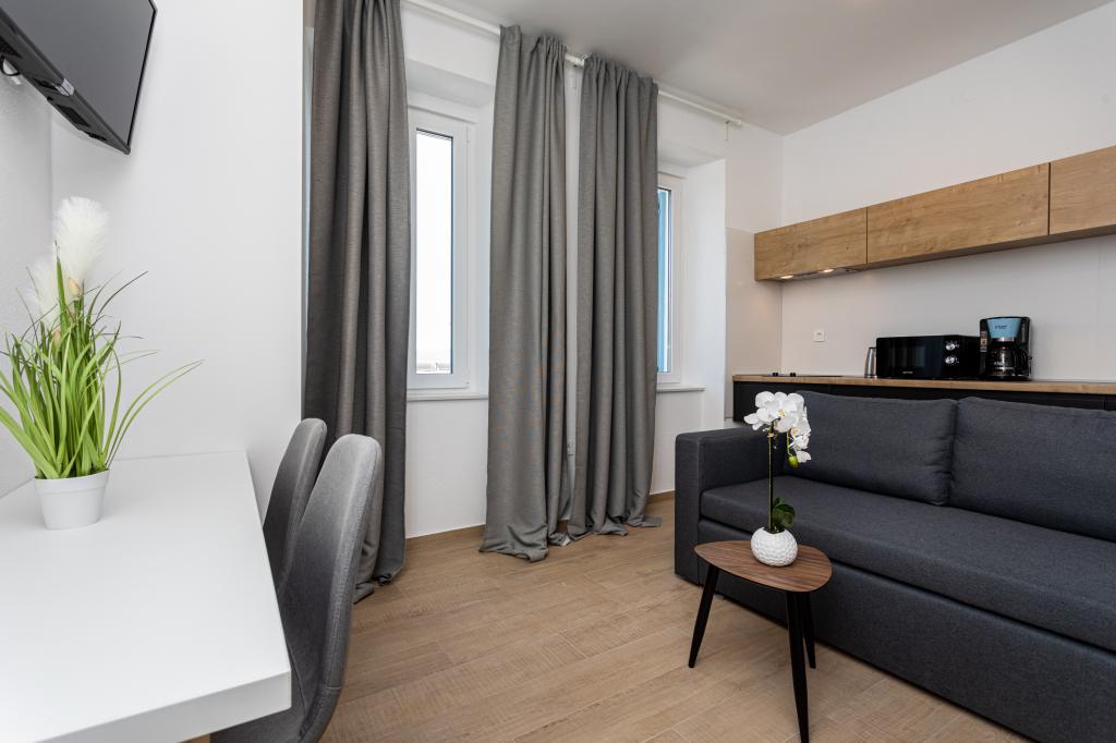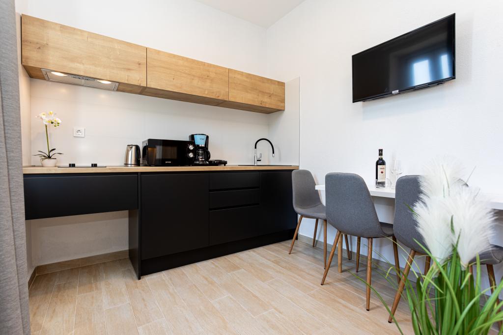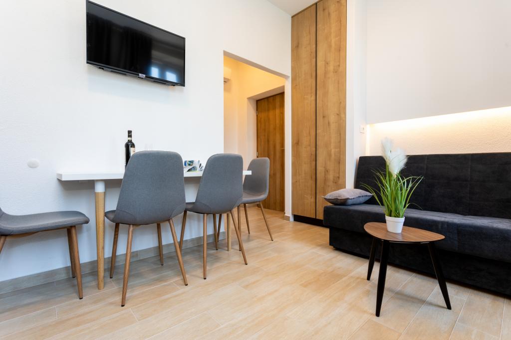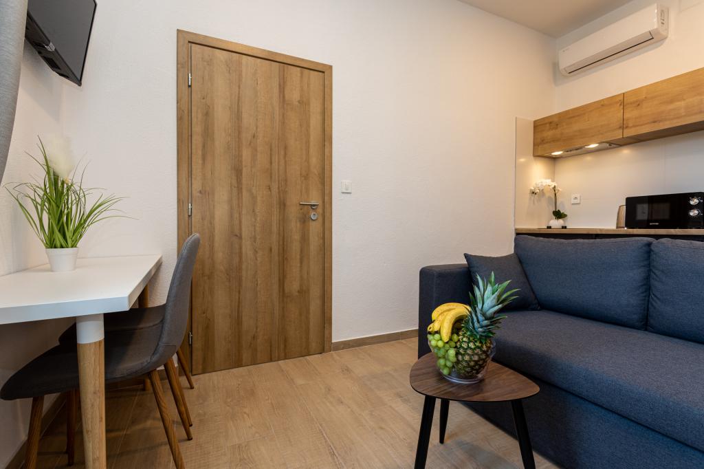 Die Apartments „SAN LEOPOLDO“ befinden sich im Zentrum von Crikvenica, 100 m vom Strand entfernt. In einer Entfernung von 100 m gibt es alle notwendigen Einrichtungen wie Märkte, Restaurants, Cafés und alles andere. Jede Wohnung im Gebäude verfügt über eine eigene private Terrasse, die mit dem Zwitschern der Vögel völlige Ruhe ohne Lärm und Aufregung bietet. Die Anlage verfügt außerdem über einen großen Garten mit einem großen Steingrill, der den Gästen zur Verfügung steht, sowie über ein Dutzend Palmen und verschiedene andere Bäume und Pflanzen, die für viel Ruhe im Urlaub sorgen. Die Anlage verfügt auch über einen eigenen Privatparkplatz. Liebe Gäste, die Appartements „SAN LEOPOLDO“ wünschen Ihnen einen angenehmen Empfang!!!