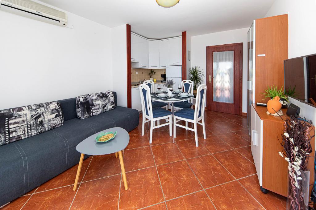 Ein wunderschöner Urlaub, an den wir uns gerne zurückerinnern werden Die Wohnung ist toll, alles was man für einen angenehmen Aufenthalt braucht ist da, sauber, schön eingerichtet. Der Blick auf das Meer vom schönen Balkon ist fantastisch. Der Strand ist schön und geschmückt, Kinderspielplatz nur wenige Gehminuten entfernt. Ruhiger Teil der Stadt. Ein einfacher Spaziergang am Meer entlang zum Zentrum in 15 Minuten Familie Prpić super Gastgeber hilfsbereit und unaufdringlich Wir kommen gerne wieder Wir empfehlen es jedem