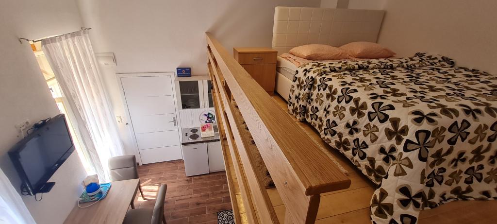 Die neuen und modern ausgestatteten Apartments Sara befinden sich in einer ruhigen Gegend, nur 200 m vom Zentrum von Crikvenica entfernt. Aufgrund seiner hervorragenden Lage sind alle Annehmlichkeiten der Stadt innerhalb von 5-10 Minuten zu Fuß erreichbar (Strände, Restaurants, Bars, Geschäfte...). Zwei Studio-Apartments im Erdgeschoss des Gebäudes sind auf zwei Ebenen angeordnet: Im unteren Teil befindet sich ein geräumiges Wohnzimmer, eine Küche mit einem Tisch zum Servieren von Mahlzeiten und ein Badezimmer mit Dusche, während sich das Schlafzimmer mit einem Doppelbett befindet befindet sich auf der Galerie. Die restlichen zwei Studio-Apartments im ersten Stock des Gebäudes enthalten jeweils 3 Betten, eine Küche mit einem Tisch zum Servieren von Mahlzeiten und ein Badezimmer mit Dusche. Alle Apartments sind mit Klimaanlage, Sat-TV, WLAN-Internet ausgestattet, während die Küchen mit Herdplatten, Kühlschränken, Wasserkochern und allem notwendigen Geschirr zum Zubereiten und Servieren von Mahlzeiten ausgestattet sind.