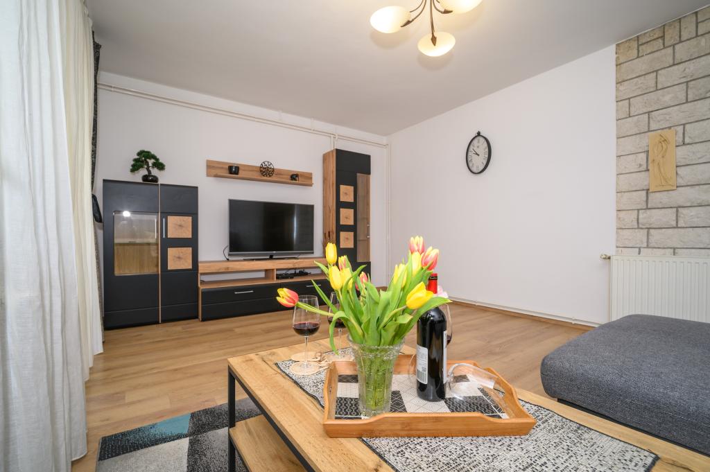 Die Apartments befinden sich in ruhiger Lage, nur 50 m vom Strand und 100 m von Restaurants, Geschäften, einem Kinderspielplatz und einem Sportplatz entfernt. Jedes Apartment verfügt über einen eigenen Parkplatz, und die Gäste haben Zugang zu einem Grill und einer großen Terrasse. WLAN, Klimaanlage und Sat-TV sind im Mietpreis inbegriffen. Die Apartments sind neu, modern und komfortabel ausgestattet und bieten einen idealen Urlaub ohne Auto.