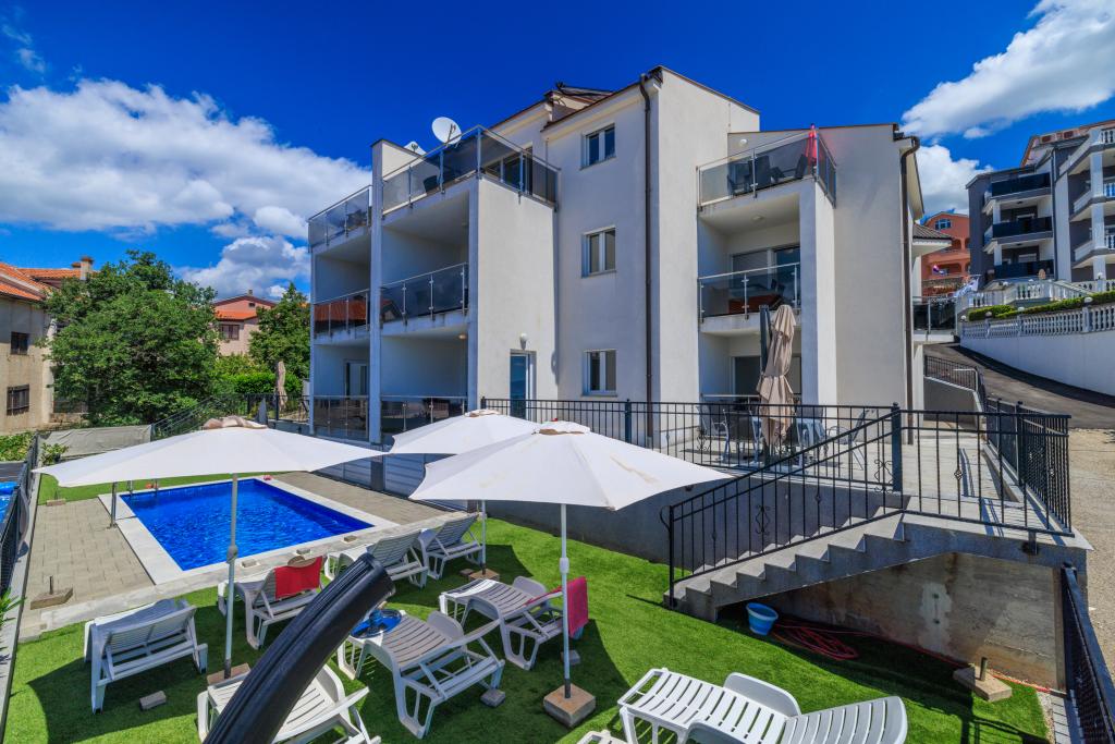 Villa Tatjana bietet Ihnen moderne, familienfreundliche und geräumige Fereienwohnungen mit Swimmingpool. Eigene PKW Abstellplätze, Grillbereich mit einer großer Gemeinschaftsküche und Terassen. Waschmaschiene im Waschraum, Fahrradabstellplatz bei Bedarf. Die Fereinwohnungen sind mit Klimaanlage ausgestattet. Küchenkomplettausstattung, Mikrowelle, Kaffemaschiene, TV-Sat und Internetzugang WIFI.