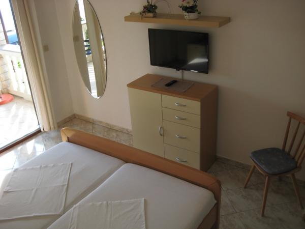 Kurtaxe ist nicht im Preis inbegriffen.Wir haben eine tolle Zeit in diesen Apartments verbracht. Gute Lage, saubere und flache Zimmer mit gut ausgestatteter Ausstattung, nicht weit vom Meer entfernt, viele Strände in 5-10 Gehminuten erreichbar. Die meisten Zimmer haben einen separaten Eingang, was sehr komfortabel ist. Die Zimmer sind gut geschnitten, um eine ausgeglichene Temperatur zu gewährleisten, sodass man keine Klimaanlage benötigt. Die Lage der Apartments ist auch gut, da man mindestens drei Supermärkte innerhalb von 5 Autominuten erreichen kann, darunter einen großen Lidl in 10-15 Gehminuten. Das Fehlen lauter und brutaler Russen ist ein Privileg. Das Wasser im Meer ist sauber und ruhig und die Strände sind etwas überfüllt, aber Sie werden immer ein separates Plätzchen finden. Ein etwas schwaches WLAN kann möglicherweise zu Unannehmlichkeiten führen, für uns war dies jedoch kein großes Problem, da wir Internet-Roaming nutzten. Die Besitzer waren sehr gastfreundlich und herzlich.