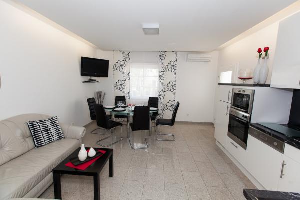 Moderne und luxuriös eingerichtete Apartments in einem ruhigen Teil von Crikvenica. Das Haus ist von mediterranen Pflanzen umgeben und der großzügige beheizte Pool bietet jedem Gast vollen Genuss. Für Sportbegeisterte steht im Hof des Hauses ein voll funktionsfähiges Fitnessstudio zur Verfügung. Außerdem gibt es im Haus eine große Küche, in der Sie Geburtstage feiern können. Jeder Gast kann die Kaffeemaschine kostenlos nutzen.