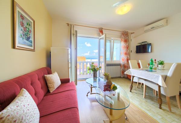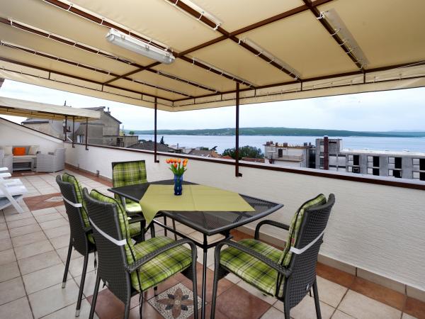 Eingezäunte Villa im Zentrum von Crikvenica, in zweiter Reihe zum Meer, nur 3 Gehminuten vom Strand und der Promenade sowie 5 Minuten vom Zentrum entfernt. Die Villa verfügt über einen gepflegten Garten mit Grill und Feuerstelle für die Gäste sowie einen abschließbaren Parkplatz. Das Haus bietet vier komfortable Apartments mit Blick auf das Meer, die Stadtgärten und die Insel Krk. Die Apartments sind mit drei bzw. vier Sternen kategorisiert. Drei Apartments bieten Platz für 4-5 Personen, das Apartment für 2-3 Personen (4 Sterne). Alle Apartments sind komfortabel ausgestattet mit eigener Terrasse oder Balkon, Sat-TV, WLAN, Klimaanlage, Safe, voll ausgestatteter Küche und der Möglichkeit, den Gartengrill zu nutzen. Geöffnet ist die Villa vom 1. Mai bis 30. September. Im Winter sind auf Anfrage ein Apartment für 4 Personen und ein Apartment für 2 Personen mit Zentralheizung, Balkon und Blick auf die Stadtgärten und die Insel Krk verfügbar.