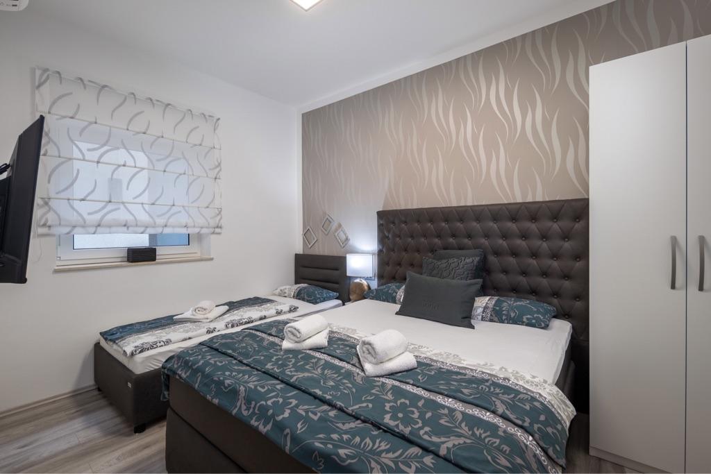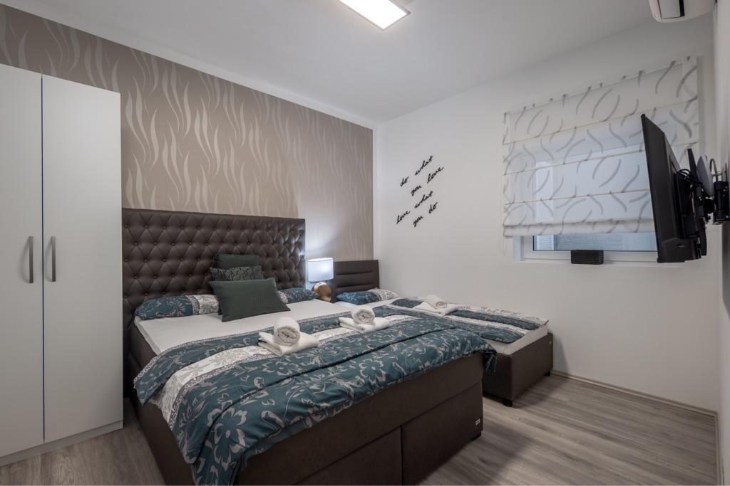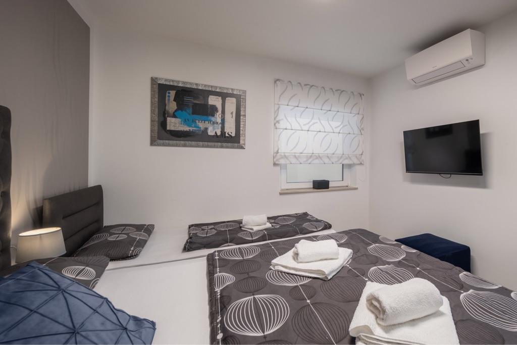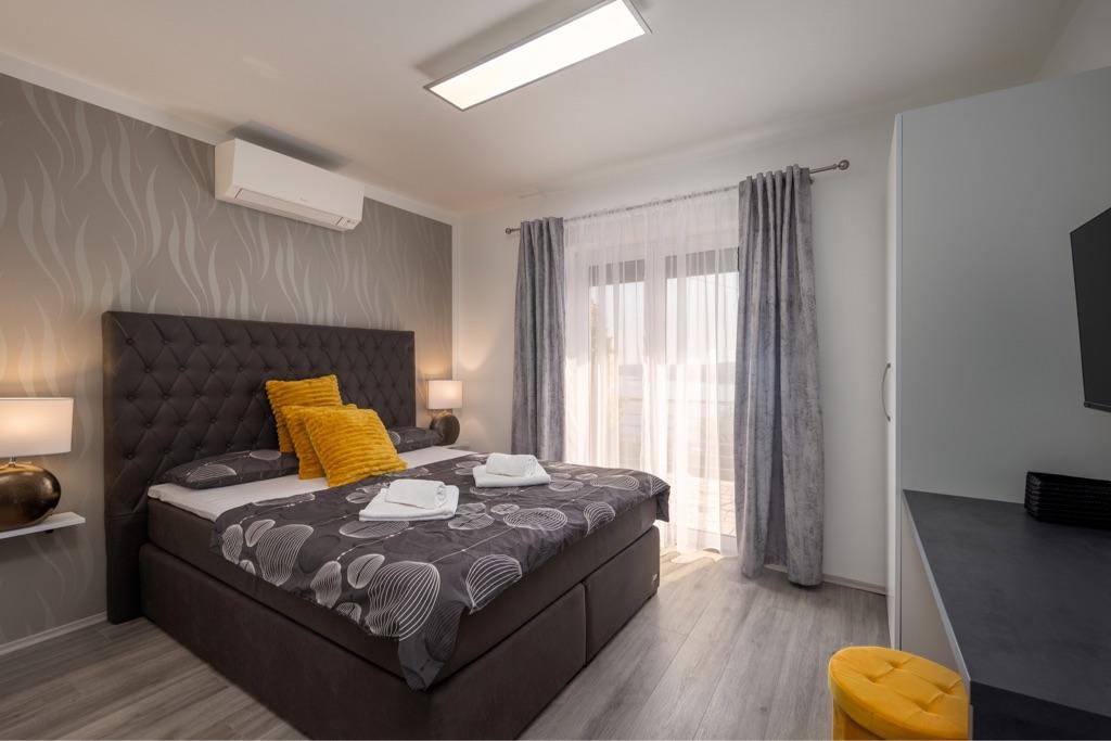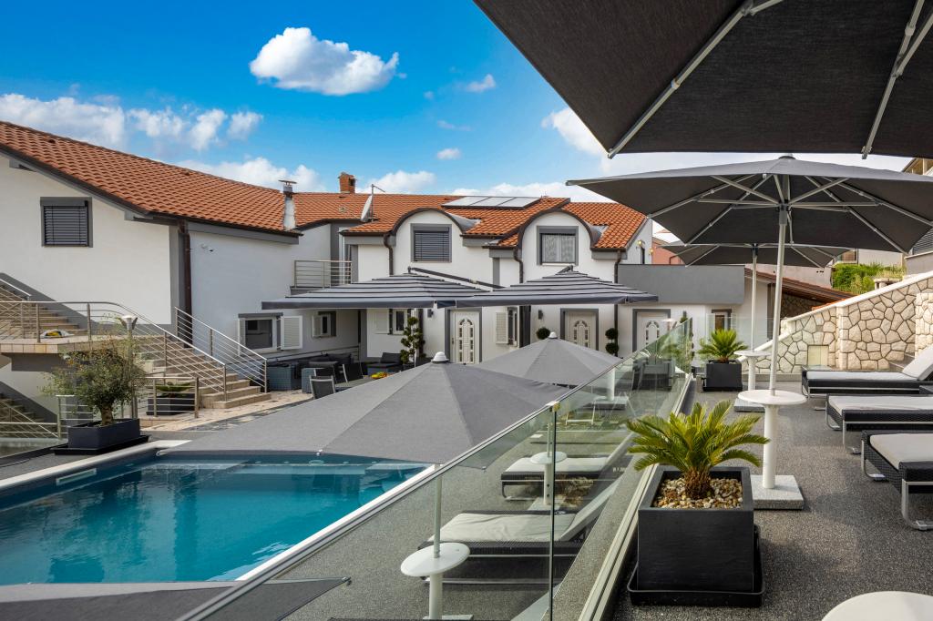 Fühlen Sie sich in unserer Ferienhausanlage Villa Fijala mit Ferienwohnungen und Appartements wie zu Hause. Das Gebäude wurde 1986 erbaut und im Jahr 2021 komplett renoviert und modernisiert. Bis heute achten wir auf jedes Detail und der Komfort und das Wohlbefinden unserer Gäste stehen für uns an erster Stelle. Das Haus liegt ca. 700 Meter Luftlinie vom Zentrum und dem Strand entfernt und verfügt über kostenlose Parkplätze. Der Komplex verfügt über 2 große Apartments und 3 Apartments mit jeweils separaten Eingängen. Jedem Gast steht ein großer Außenbereich zur Verfügung: eine große Terrasse, ein beheizter Pool (10,5m x 5,5m), eine große sonnige Terrasse mit hochwertigen Sonnenliegen, eine Sommerküche mit verschiedenen Grills, zwei Außenduschen und vieles mehr. . ! Ihre Familie Fijala