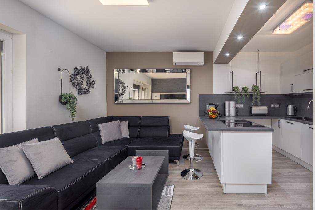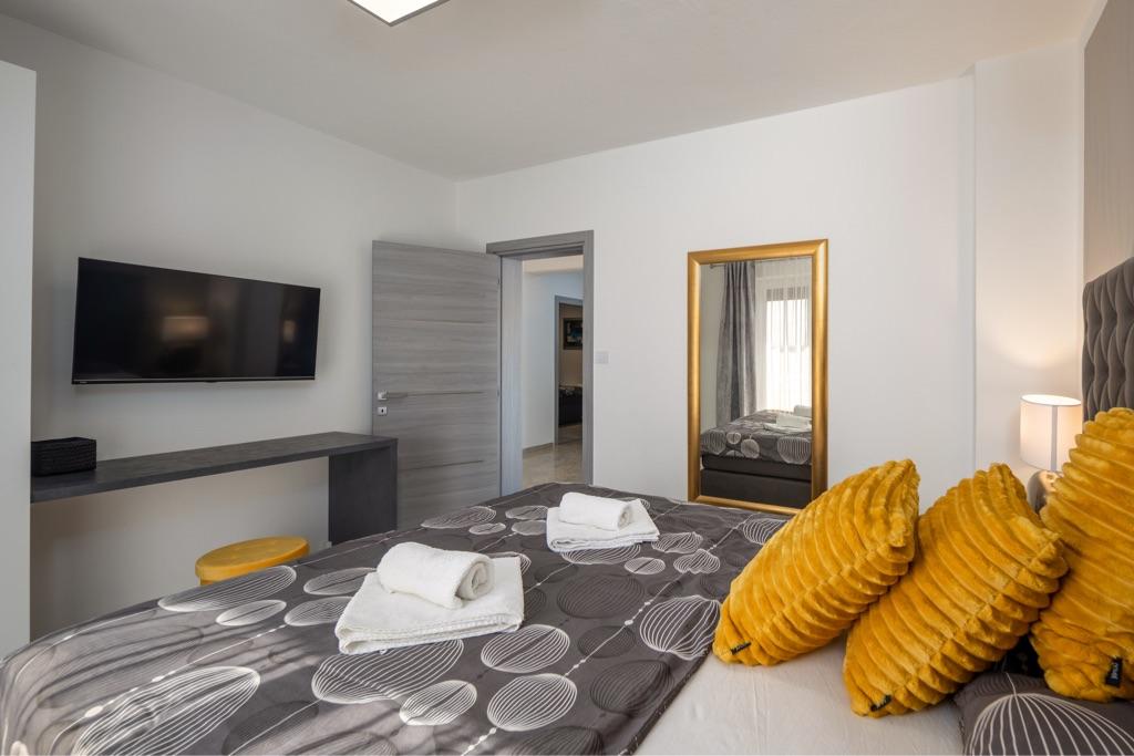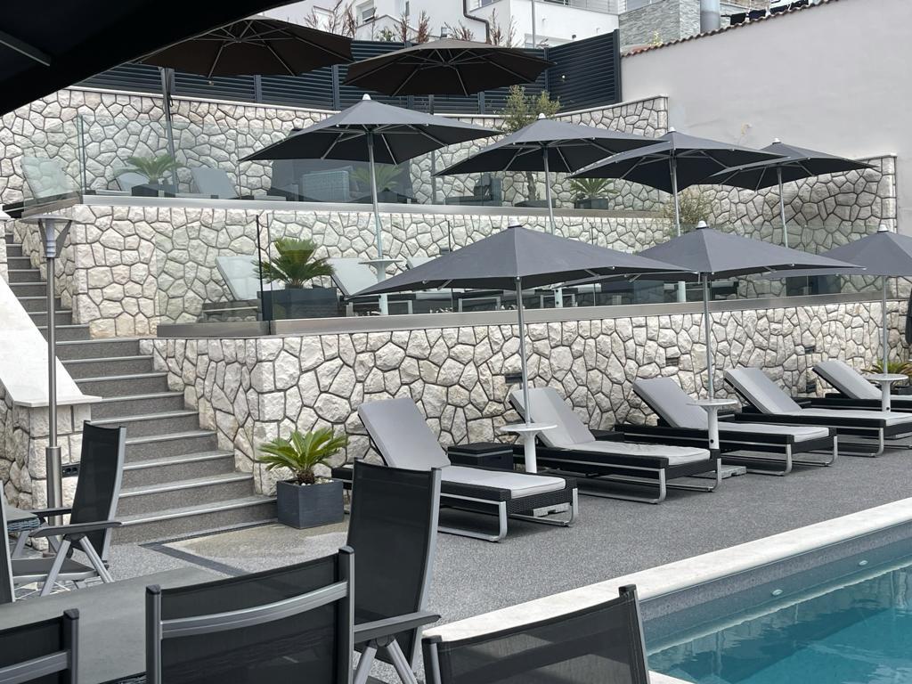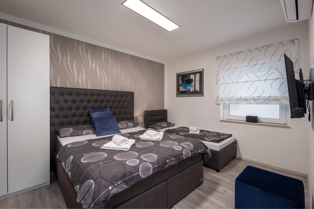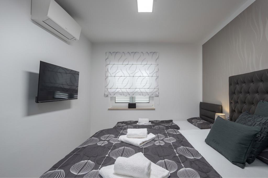 Fühlen Sie sich in unserer Ferienhausanlage Villa Fijala mit Ferienwohnungen und Appartements wie zu Hause. Das Gebäude wurde 1986 erbaut und im Jahr 2021 komplett renoviert und modernisiert. Bis heute achten wir auf jedes Detail und der Komfort und das Wohlbefinden unserer Gäste stehen für uns an erster Stelle. Das Haus liegt ca. 700 Meter Luftlinie vom Zentrum und dem Strand entfernt und verfügt über kostenlose Parkplätze. Der Komplex verfügt über 2 große Apartments und 3 Apartments mit jeweils separaten Eingängen. Jedem Gast steht ein großer Außenbereich zur Verfügung: eine große Terrasse, ein beheizter Pool (10,5m x 5,5m), eine große sonnige Terrasse mit hochwertigen Sonnenliegen, eine Sommerküche mit verschiedenen Grills, zwei Außenduschen und vieles mehr. . ! Ihre Familie Fijala