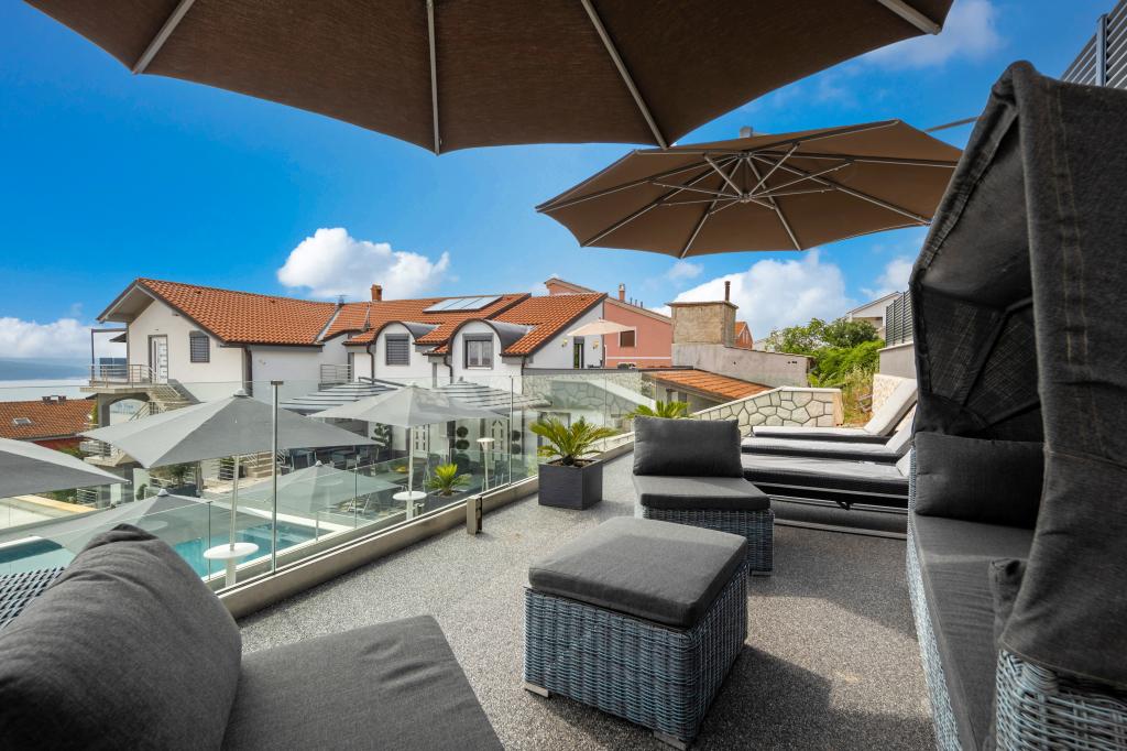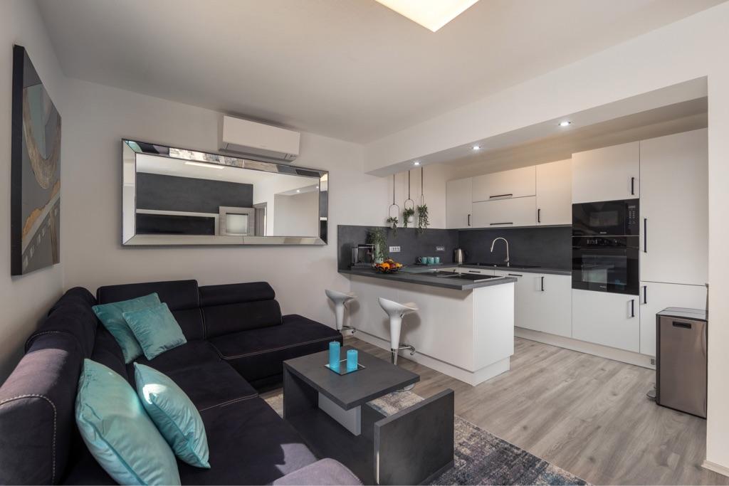 Kurtaxe ist im Preis inbegriffen.Komplett und modern ausgestattete Wohnungen, großer Parkplatz, große Terrasse mit Grill und Gasgrill, alle Wohnungen sind mit Innen- und Sat-TV ausgestattet. Die gemeinsame große Terrasse mit einem 10,5 x 5,5 m großen Pool kann ebenfalls beheizt werden. Große Terrasse zum Sonnenbaden. Hochwertige Liegestühle zum Sonnenbaden und Loungemöbel