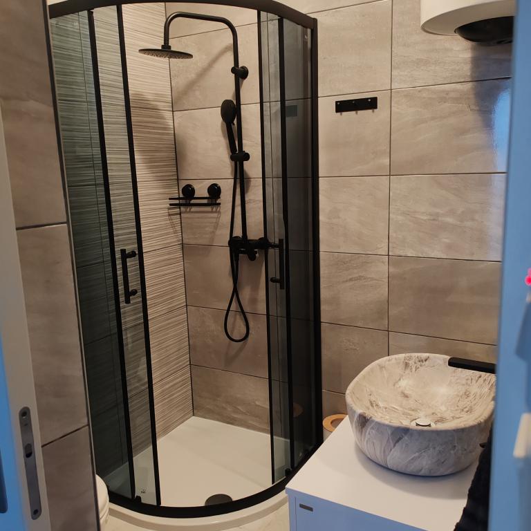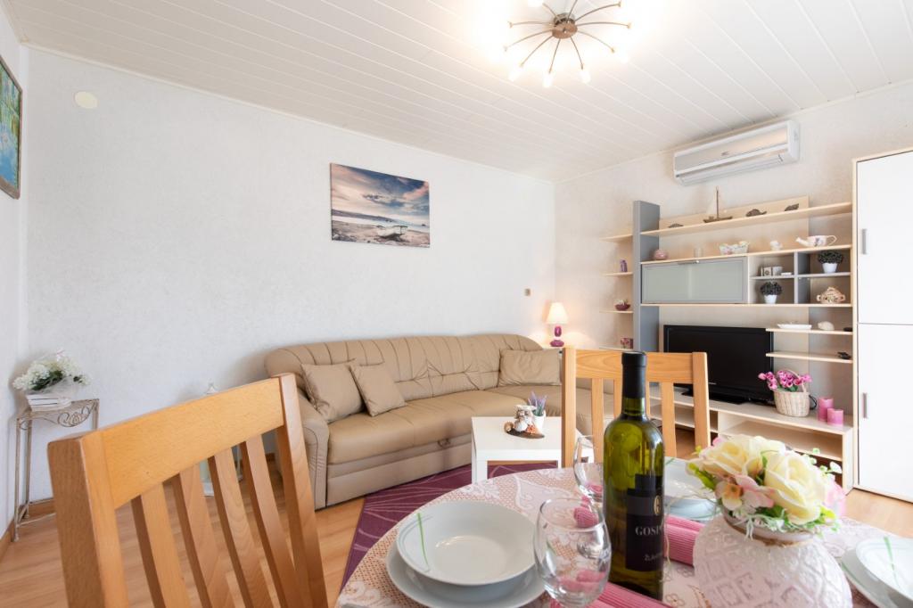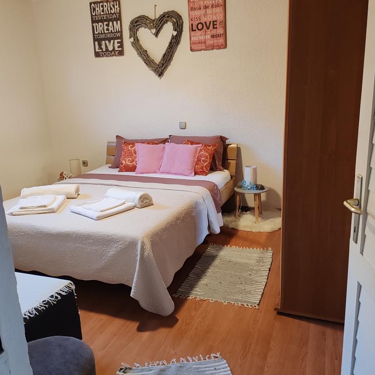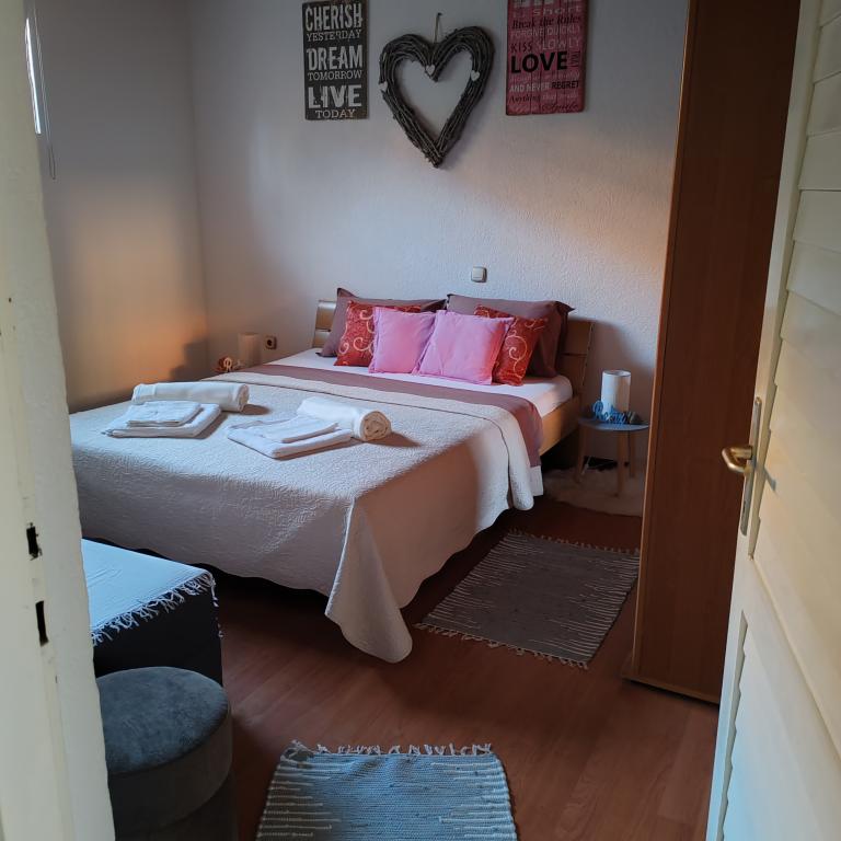 Neu renovierte Wohnung im Erdgeschoss eines Einfamilienhauses mit großem Garten und privatem Parkplatz. Die Entfernung zum Strand beträgt 3 Gehminuten, ebenso wie zum Zentrum von Crikvenica, wo im Sommer alle Veranstaltungen stattfinden. Die Wohnung ist mit Klimaanlage, allen notwendigen Haushaltsgeräten, WLAN, Satellit ausgestattet und es gibt einen Grill im Hof. Der Garten ist eingezäunt und groß mit viel Schatten, was sich besonders gut für Haustiere eignet, die natürlich willkommen sind.