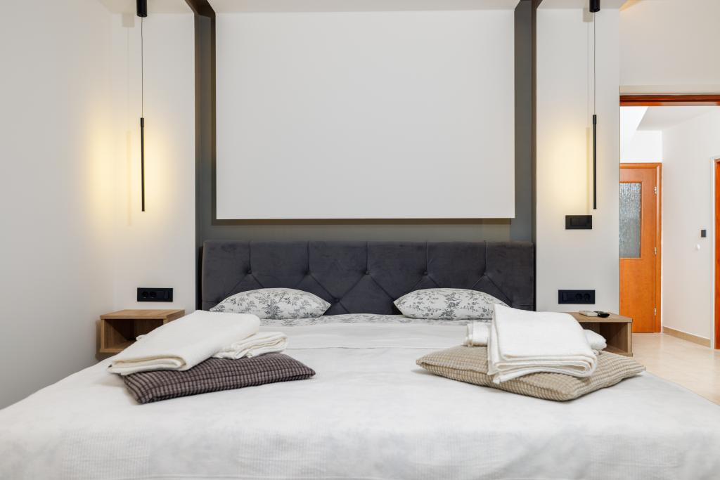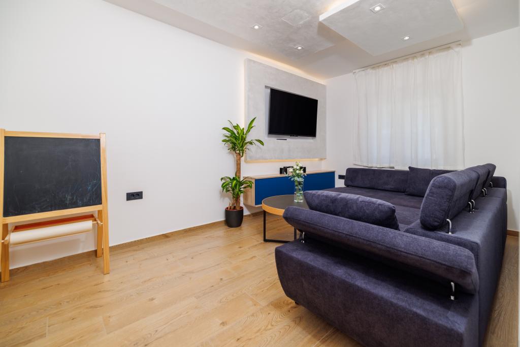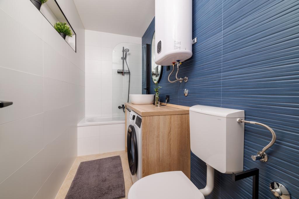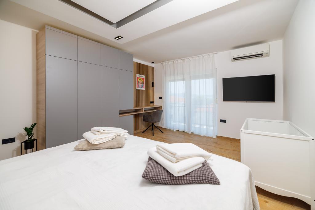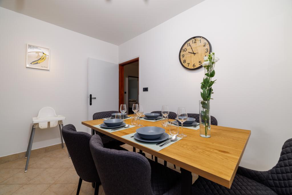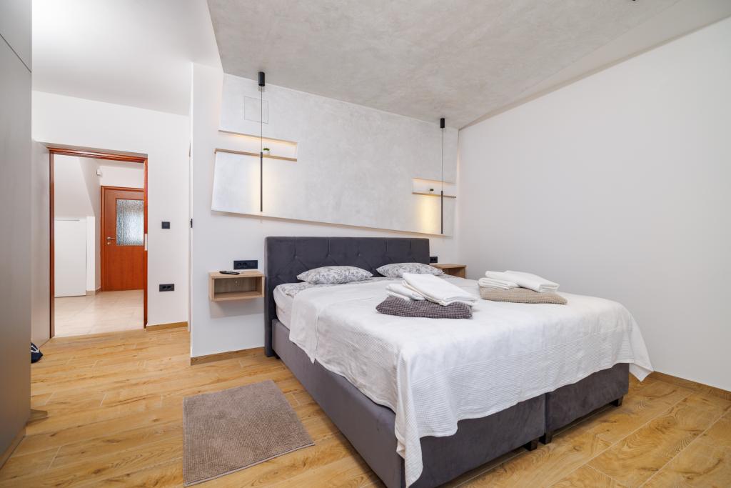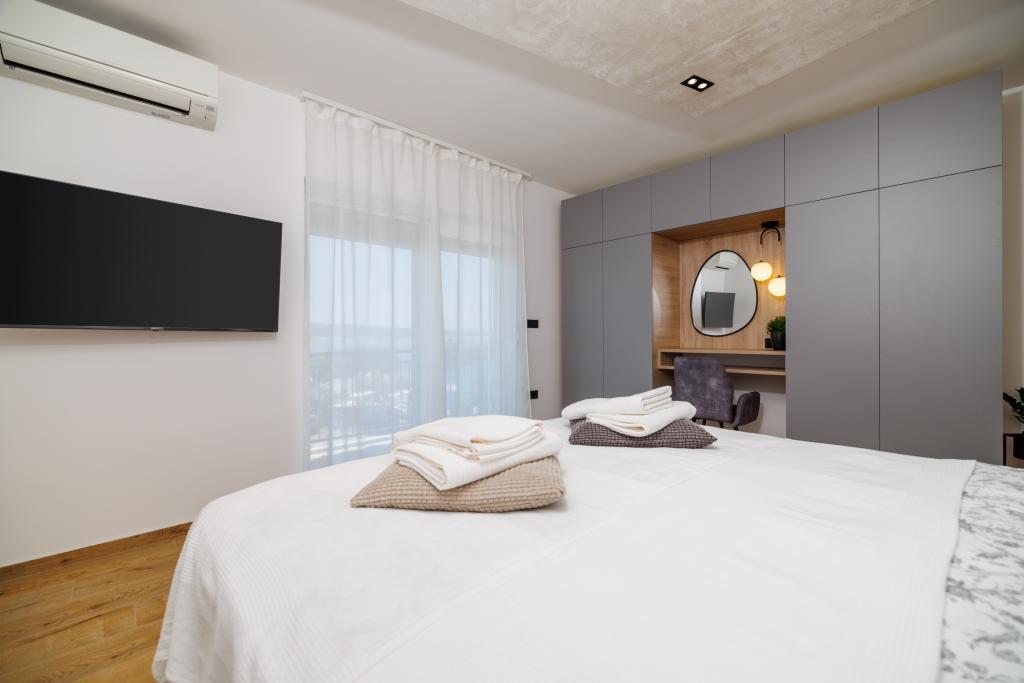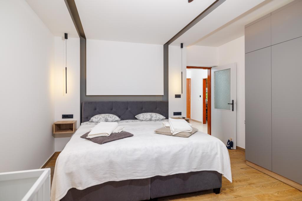 Das neu eingerichtete, komplett im modernen Stil renovierte App Mladen liegt in einem ruhigen Teil der Stadt, nur 5 Gehminuten vom Zentrum und 2 Gehminuten vom Strand entfernt. Die Wohnung eignet sich für einen angenehmen und ruhigen Urlaub. Der nächste Strand ist nur 50 m von der Wohnung entfernt. Die Nähe zum Zentrum (300 m), kostenlose Parkplätze, Internet (WLAN) und Klimaanlage sind weitere Vorteile, die wir unseren Gästen bieten. Die Wohnung ist mit modernen Möbeln sowie allen anderen Geräten ausgestattet. Wohnzimmer (Doppelschlafcouch, Fliesen, Kinderspielecke). Küche (Elektroherd, Backofen, Kühlschrank mit Gefrierfach, Kaffeemaschine, Mikrowelle, Geschirrspüler, Wasserkocher, Küchentücher). Schlafzimmer: (2 Doppelzimmer mit jeweils einem Doppelbett). Badezimmer (Badezimmer mit Toilette, Dusche und Waschbecken sowie Badezimmer mit Toilette, Badewanne, Waschbecken und Waschmaschine). Balkon/Terrasse (eigener Balkon, teilweise überdacht, mit Meerblick, Bestuhlung, Balkongröße: 12m