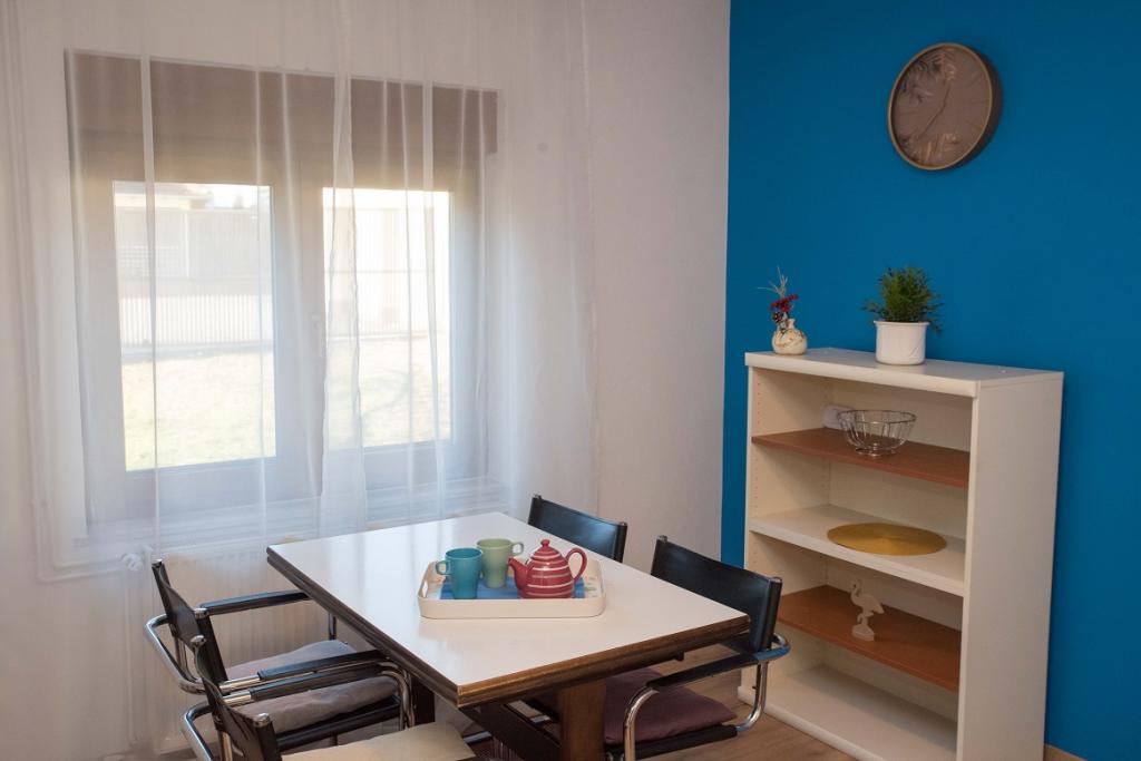 Die modern eingerichtete Wohnung befindet sich in einem Einfamilienhaus. Sie bietet einen angenehmen Ort zum Entspannen oder Arbeiten und besteht aus einem Flur, einem Schlafzimmer mit Doppelbett, einem Badezimmer und einer Wohnküche mit Schlafsofas, auf denen zwei weitere Betten aufgestellt werden können. Die Wohnungen liegen ca. 600 m vom Stadtplatz, Park, der Spezialklinik für Rehabilitation, dem Thermalbad und einem See entfernt – diese sind in maximal 7 Minuten bequem zu Fuß erreichbar. Ein Geschäft befindet sich in unmittelbarer Nähe. Die Nähe zu verschiedenen weiteren Einrichtungen wie Restaurants, Cafés, Apotheken und dem Gesundheitszentrum sorgt für einen rundum gelungenen und angenehmen Aufenthalt.