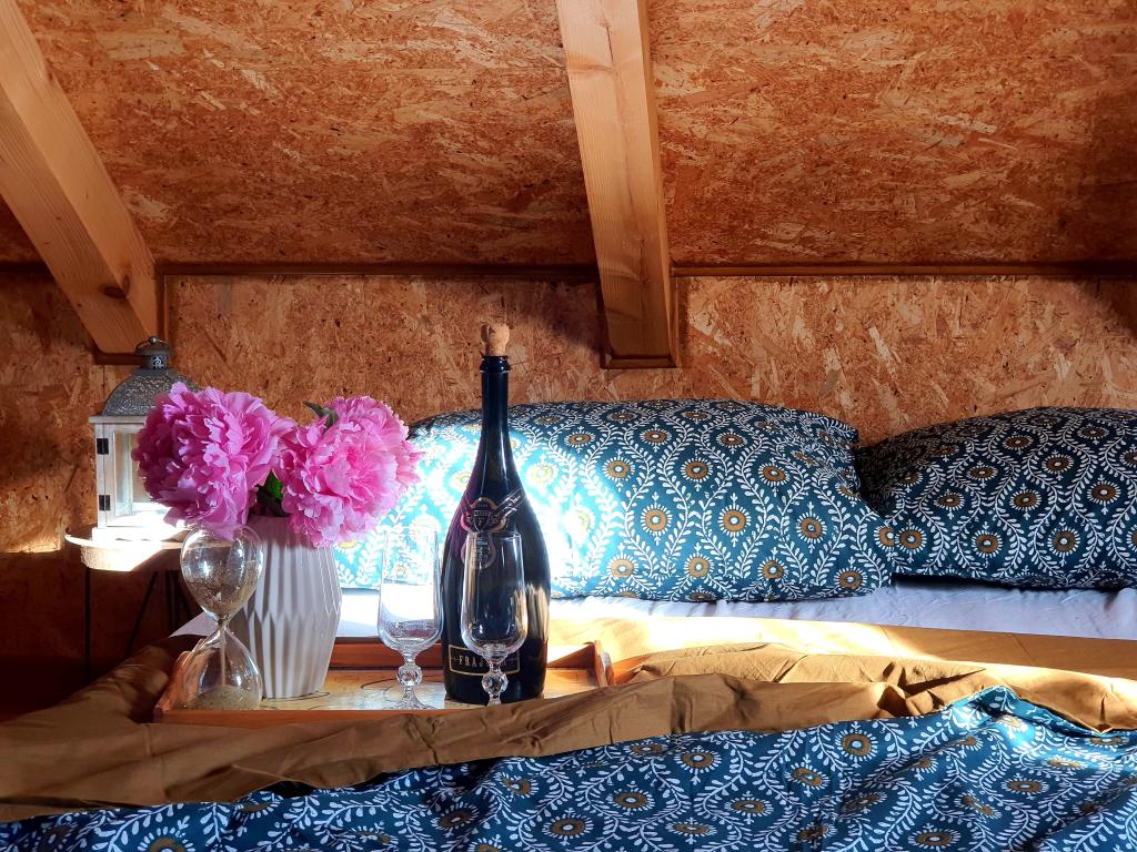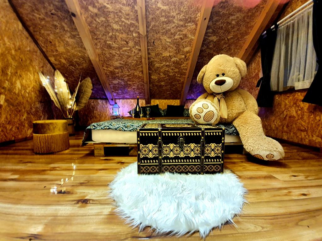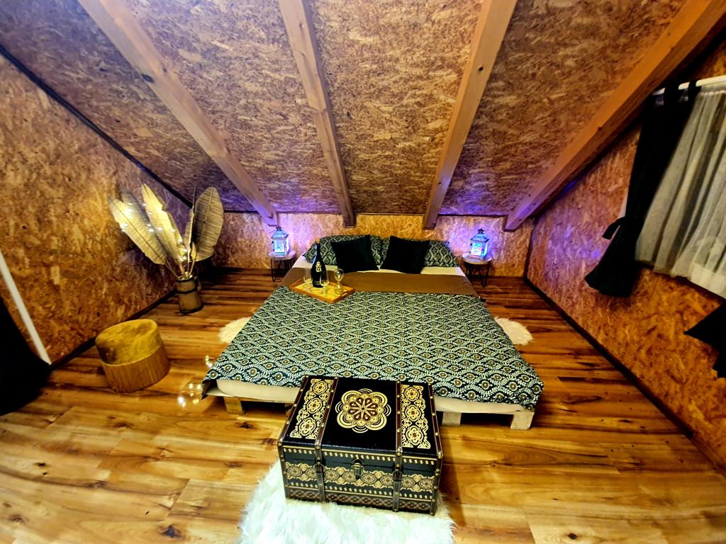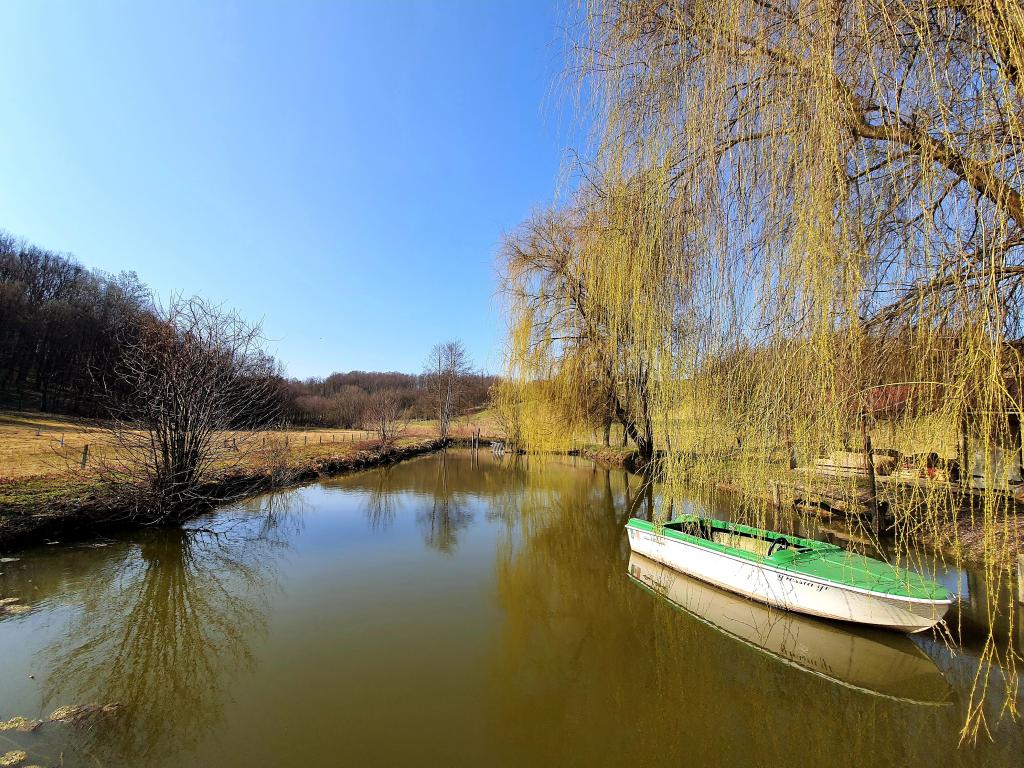 Die Oase der Ruhe umfasst ein Ferienhaus aus Holz in der Stadt Dioš, nur 7 km von der Stadt Daruvar entfernt. Das Haus besteht aus einer mit dem Wohnzimmer verbundenen Küche, einem Schlafzimmer im Dachgeschoss mit Balkon und einer Toilette. Die Dusche ist draußen und befindet sich direkt neben dem Haus. Kapazität für 5 Personen - im Schlafzimmer gibt es ein Doppelbett für zwei Personen und ein Zustellbett, im Wohnzimmer gibt es ein Schlafsofa für zwei weitere Personen. Vor dem Haus befindet sich eine großzügige Terrasse mit Seeblick. Außerdem steht den Gästen ein Fischerboot mit Platz für Geselligkeit oder Feiern zur Verfügung. Haustiere sind ebenfalls erlaubt. Das Haus liegt in Alleinlage, umgeben von Wiese und Wald, und bietet die richtige Erholungsmöglichkeit für Gäste, die Ruhe und Natur suchen.