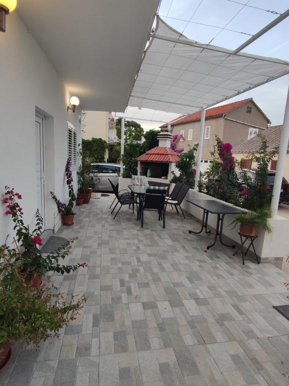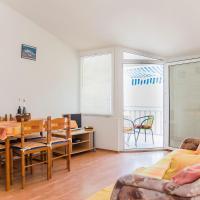 Die Wohnung besteht aus einem Schlafzimmer (in dem sich ein Doppelbett 160x200 und ein Einzelbett 90x200, Kleiderschrank befindet), Wohnzimmer mit Küche. Die Küche ist mit allen notwendigen Kochutensilien, Kochutensilien, Besteck, Teller, Wasserkocher, Kaffeemaschine, Mikrowelle, Herd mit Backofen, Kühlschrank mit Gefrierfach ausgestattet. Das Wohnzimmer verfügt über einen Esstisch mit Stühlen, Schlafsofa, Klimaanlage, TV. Das Badezimmer enthält eine Dusche, WC, Schrank mit Spiegel, in dem sich ein Fön befindet. Vom Wohnzimmer gibt es einen Ausgang zum Balkon mit schönem Meerblick. Auf dem Balkon stehen Tisch und Stühle. Das Haus befindet sich in zweiter Reihe zum Meer, 3 Gehminuten vom Zentrum, 5 Gehminuten vom Strand entfernt.